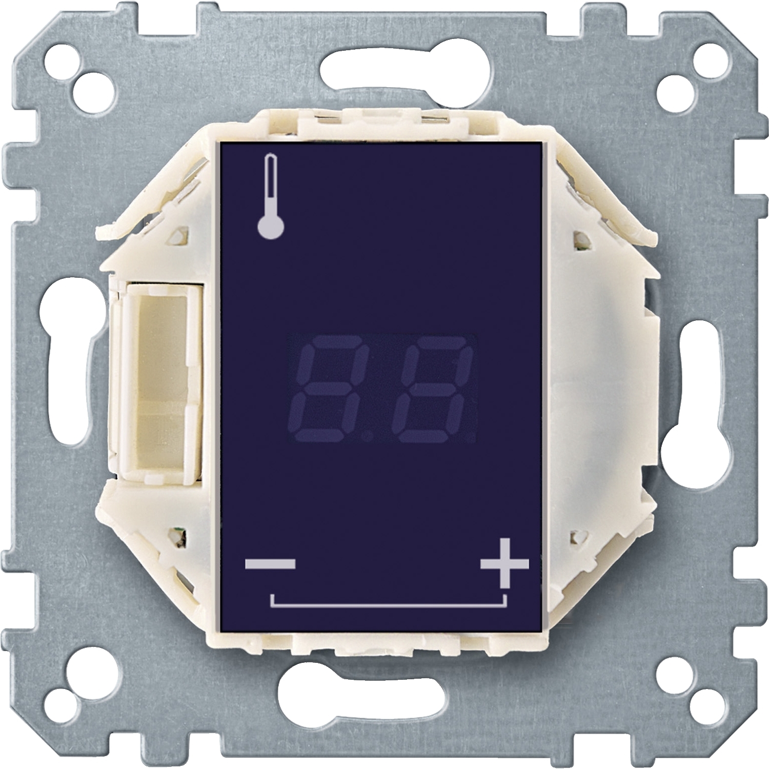 Mit dem Universal Temperaturregler-Einsatz mit Touch-Display kann die Raum- oder Bodentemperatur geregelt werden. Die Bedienung erfolgt über ein Touch-Display. An den Regler können elektrische Fußbodenheizungen, Radiatoren oder Stellantriebe angeschlossen werden. Der Thermostat kann in drei verschiedenen Modi betrieben werden: Raumluft-Modus: Der interne Temperatursensor erfasst die Temperatur und regelt diese. Fußboden-Modus: Der als Zubehör erhältliche Fußbodensensor erfasst die Bodentemperatur und regelt die elektrische Fußbodenheizung. Dual-Modus: Der interne Temperatursensor erfasst die Raumtemperatur und regelt diese. Zugleich überwacht der Fußbodensensor die Bodentemperatur und begrenzt diese auf den voreingestellten Wert der maximalen Temperatur. Dieser Modus empfielt sich besonders bei temperaturempfindlichen Parkett- oder Laminatfußböden. Nennspannung: AC 230 V, 50 Hz Nennlast (ohmsch): 16 A Nennlast (induktiv): 1 A, cos phi 0,6 Temperatureinstellbereich: Raumtemperatur: 5 35 °C Bodentemperatur: 5 50 °C.