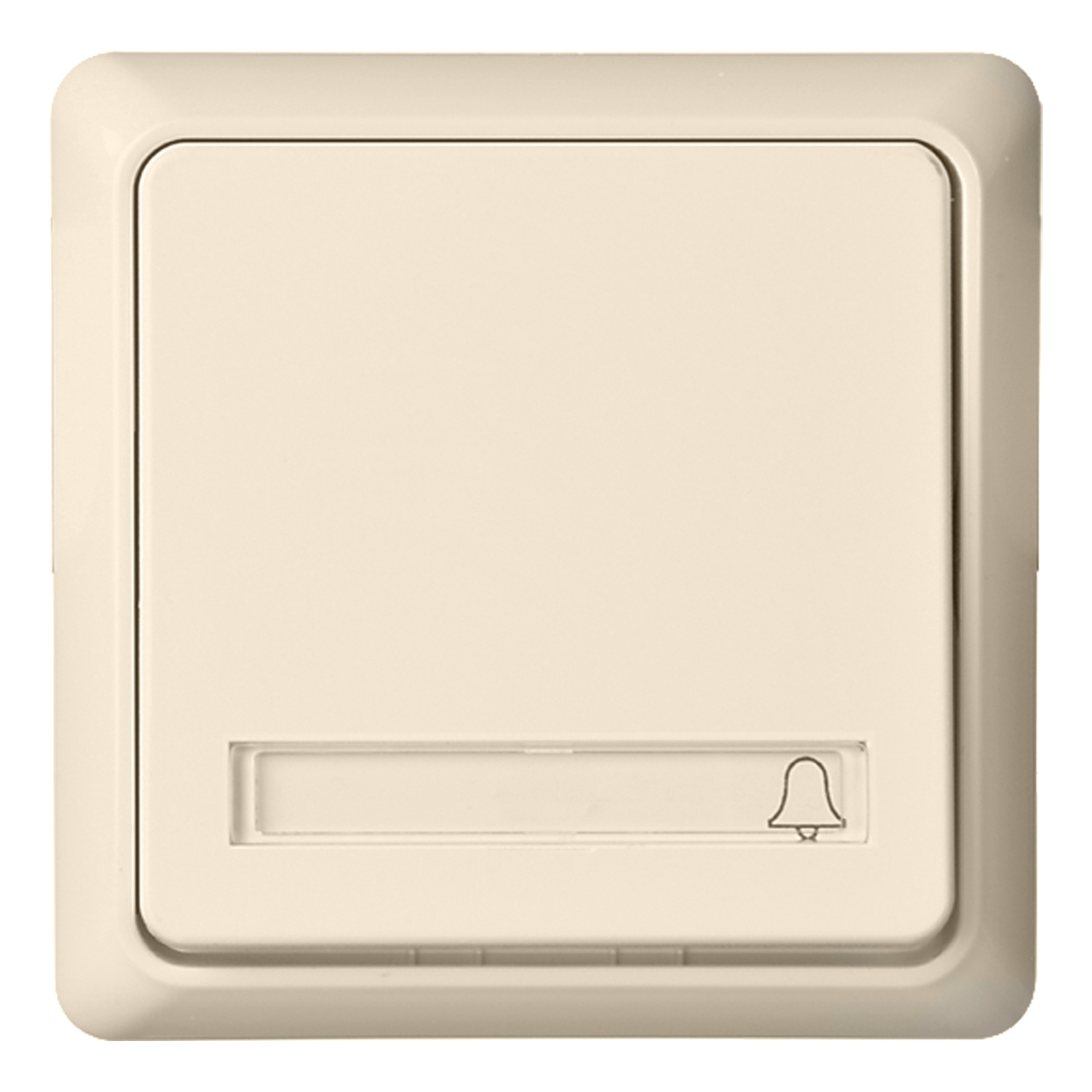 Taster mit Schriftfeld. Farbe: reinweiß, Schriftleisten mit Symbolen Klingel, Licht, Schlüssel und neutral beigelegt, Wippe beleuchtbar, für Unterputzmontage. Schutzart IP 20, Taster 10 A, 250V AC, Rahmen und Wippen aus Thermoplast, auch einsetzbar in Geräteträger mit einer Einbautiefe von mindestens 32 mm. Steckklemmen: Klemmbereich für Informationsleitungen ab Leitungsdurchmesser 0,5mm, für Kupferleiter 1,5 mm und 2,5 mm.