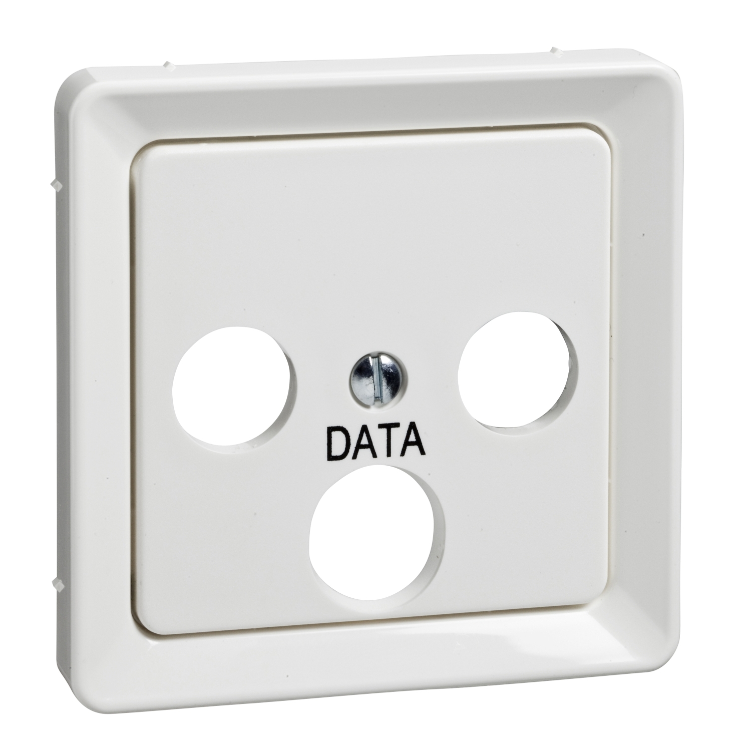 Zentralplatte für Antennensteckdosen, Farbe: reinweiß, mit 3 Öffnungen, für Antennensteckdosen mit F-Buchse rückkanaltauglich.