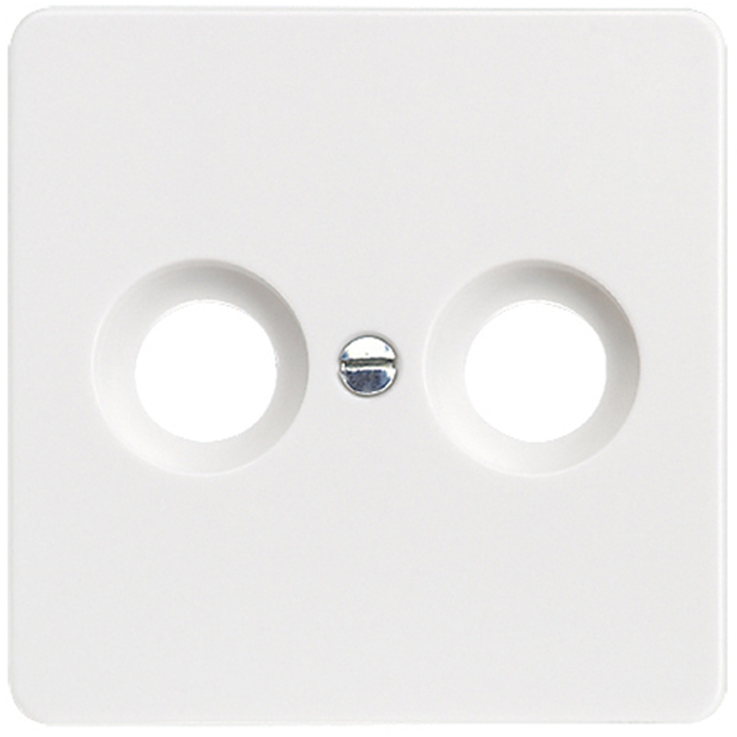 Zentralplatte für Antennensteckdosen, mit 2 Öffnungen, für Antennensteckdosen ohne F-Buchse, Farbe: reinweiß.