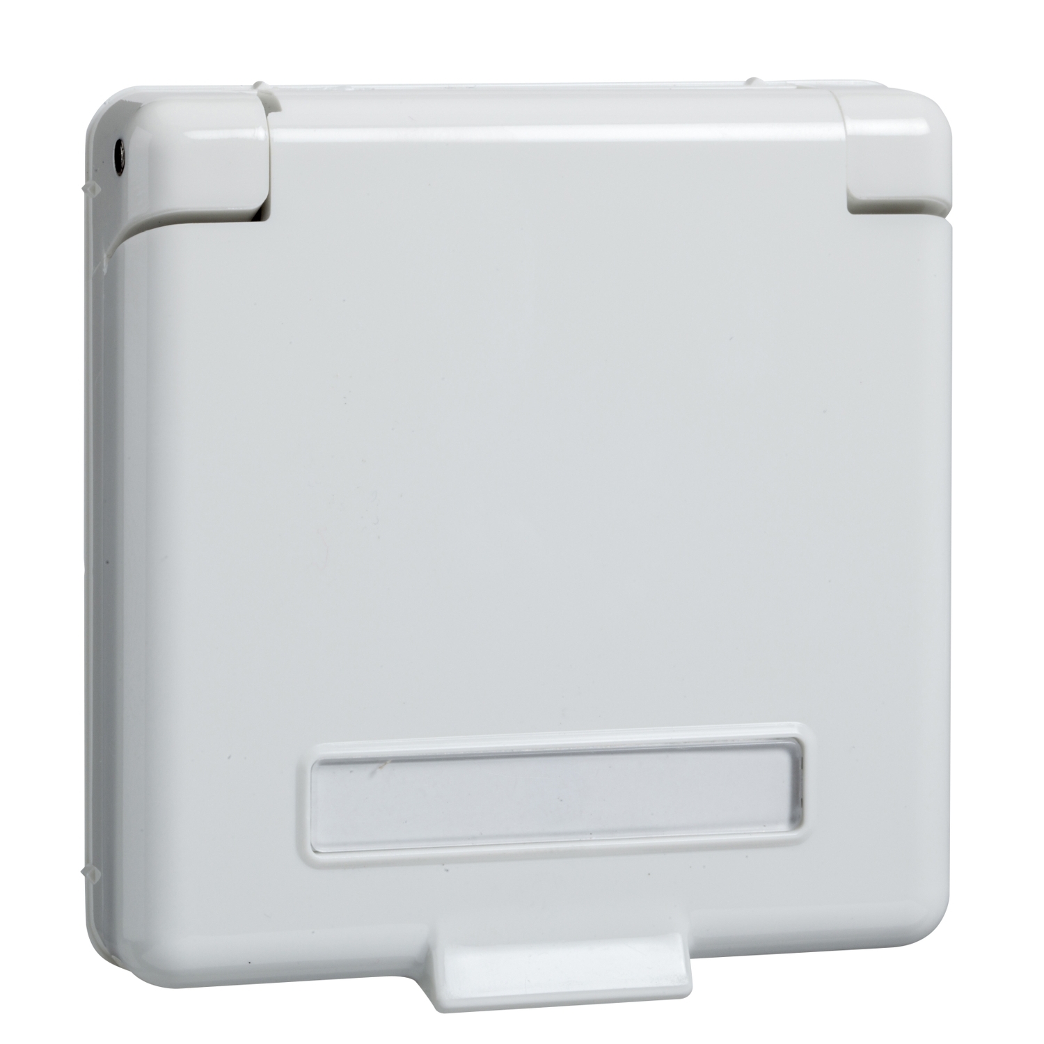 Zentralplatte für Steckdose mit Klappdeckel mit Schriftfeld zur Kom- plettierung der Steckdoseneinsätze Art-Nr. 22501- und 22511- Farbe reinweiß.