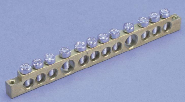 Erdungs- und Nullleiterschiene für die Verbindung von mehreren Erdungsleitern. Erdungs- und Nullleiterverteilerschiene, Messing EB12.