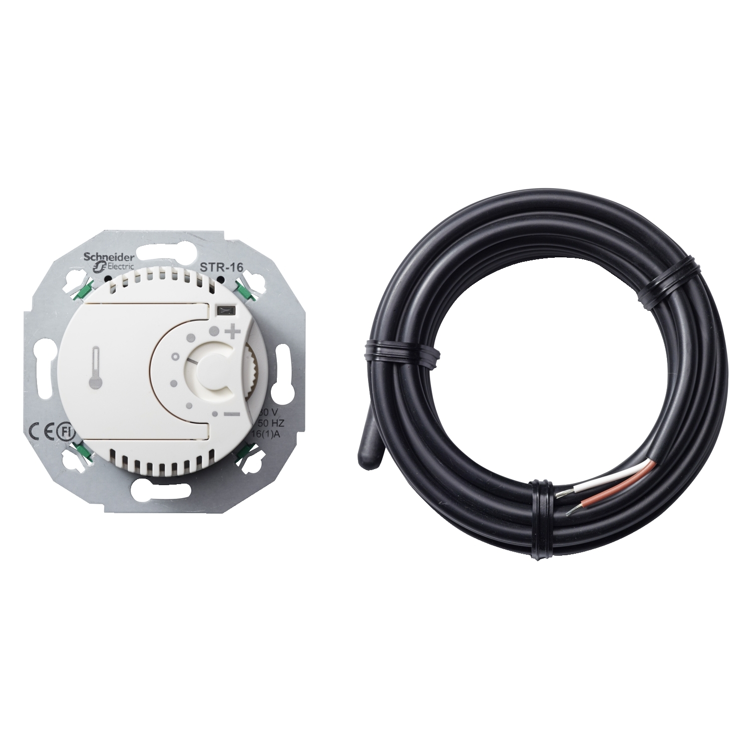 Elektronischer Temperaturregler mit Fernfühler 230 VAC ±10%, 50 Hz, 16 A (3600W / cos F 1), Öffner mit EIN/AUS-Schalter, Bei Verwendung von Stellventilen, stromlos geschlossen. einsetzen, mit LED für Zustandsanzeige, separater Anschluss für zeitgesteuerte Nachtabsenkung (4°C), Einsatz ohne Krallenbefestigung, Temperaturbereich: 5 bis 30°C, komplett mit Zentralplatte Farbe weiss Design RENOVA. RENOVA nostalgische Formen im Bakelit-Look. Hinter diesem Retrodesign verbergen sich Spitzenelektronik und ausgeklügelte Mechanik in einer optimalen Verbindung zwischen moderner Funktionalität und klassischer Form.