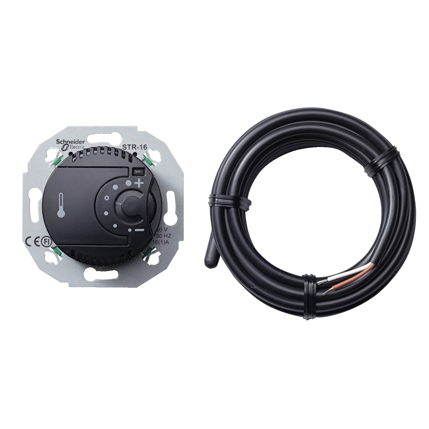 Elektronischer Temperaturregler mit Fernfühler 230 VAC ±10%, 50 Hz, 16 A (3600W / cos F 1), Öffner mit EIN/AUS-Schalter, Bei Verwendung von Stellventilen, stromlos geschlossen. einsetzen, mit LED für Zustandsanzeige, separater Anschluss für zeitgesteuerte Nachtabsenkung (4°C), Einsatz ohne Krallenbefestigung, Temperaturbereich: 5 bis 30°C, komplett mit Zentralplatte Farbe schwarz Design RENOVA. RENOVA nostalgische Formen im Bakelit-Look. Hinter diesem Retrodesign verbergen sich Spitzenelektronik und ausgeklügelte Mechanik in einer optimalen Verbindung zwischen moderner Funktionalität und klassischer Form.