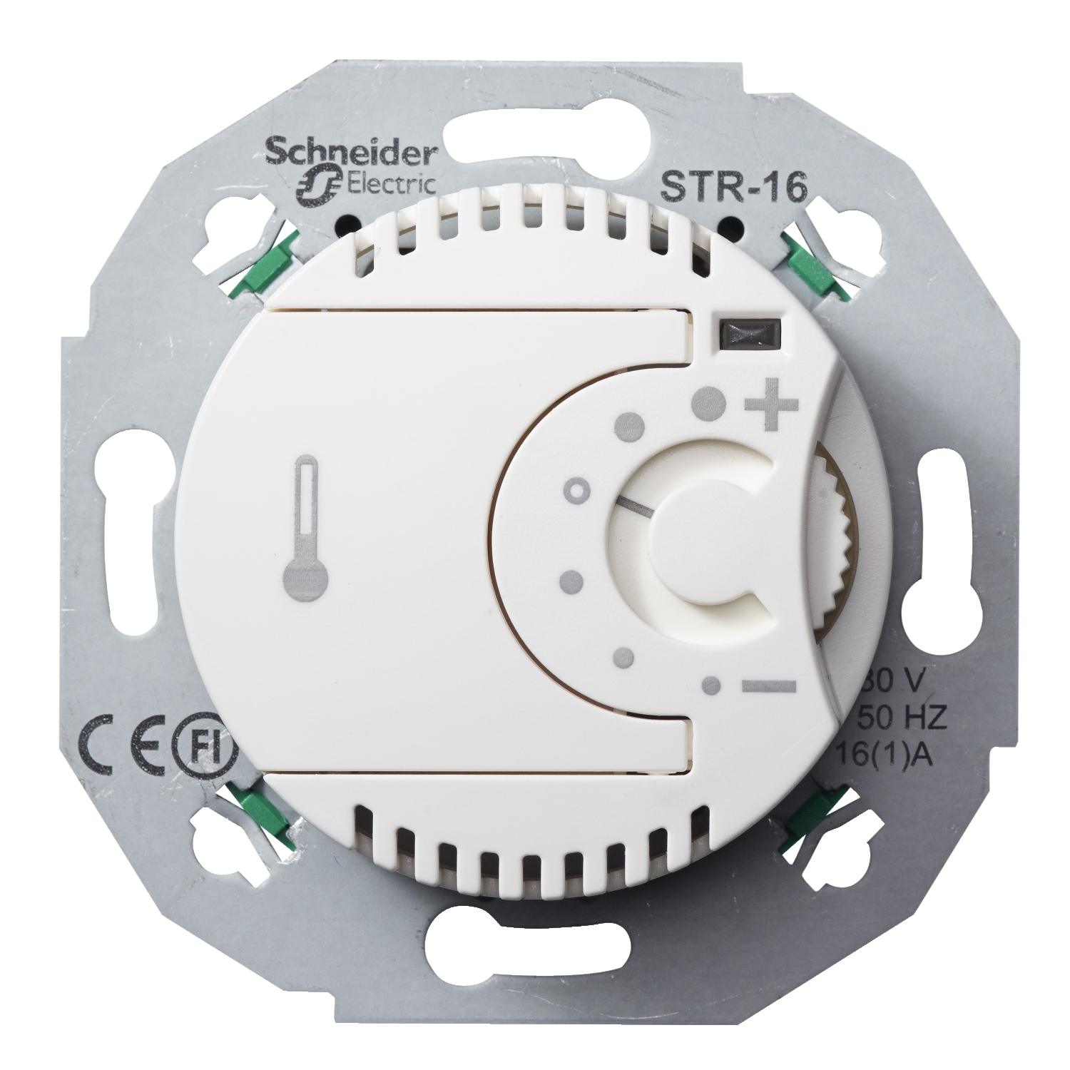 Elektronischer Temperaturregler 230 VAC ±10%. 50 Hz. 16 A (3600W / cos F 1). Öffner mit EIN/AUS-Schalter. Bei Verwendung von Stellventilen -stromlos geschlossen- einsetzen. mit LED für Zustandsanzeige. separater Anschluss für zeitgesteuerte Nachtabsenkung (4°C). Einsatz ohne Krallenbefestigung. Temperaturbereich: 5- 30°C. mit Zentralplatte weiss RENOVA.