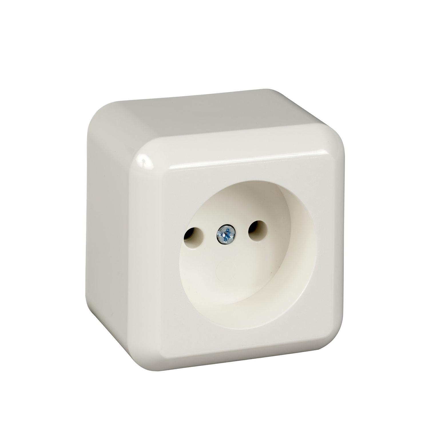 Steckdose ohne Schutzkontakt 1-fach, Farbe: reinweiß, 16 A 250V AC, Für Aufputzmontage, Schutzart IP 20, mit Grundplatte, für Montage auf brennbarem Untergrund geeignet. Schraubklemmen: Klemmbereich für Kupferleiter 1,5 mm und 2,5 mm, für den sicheren Anschluss von Aluminiumleitern 2,5 mm ohne Vorbehandlung.