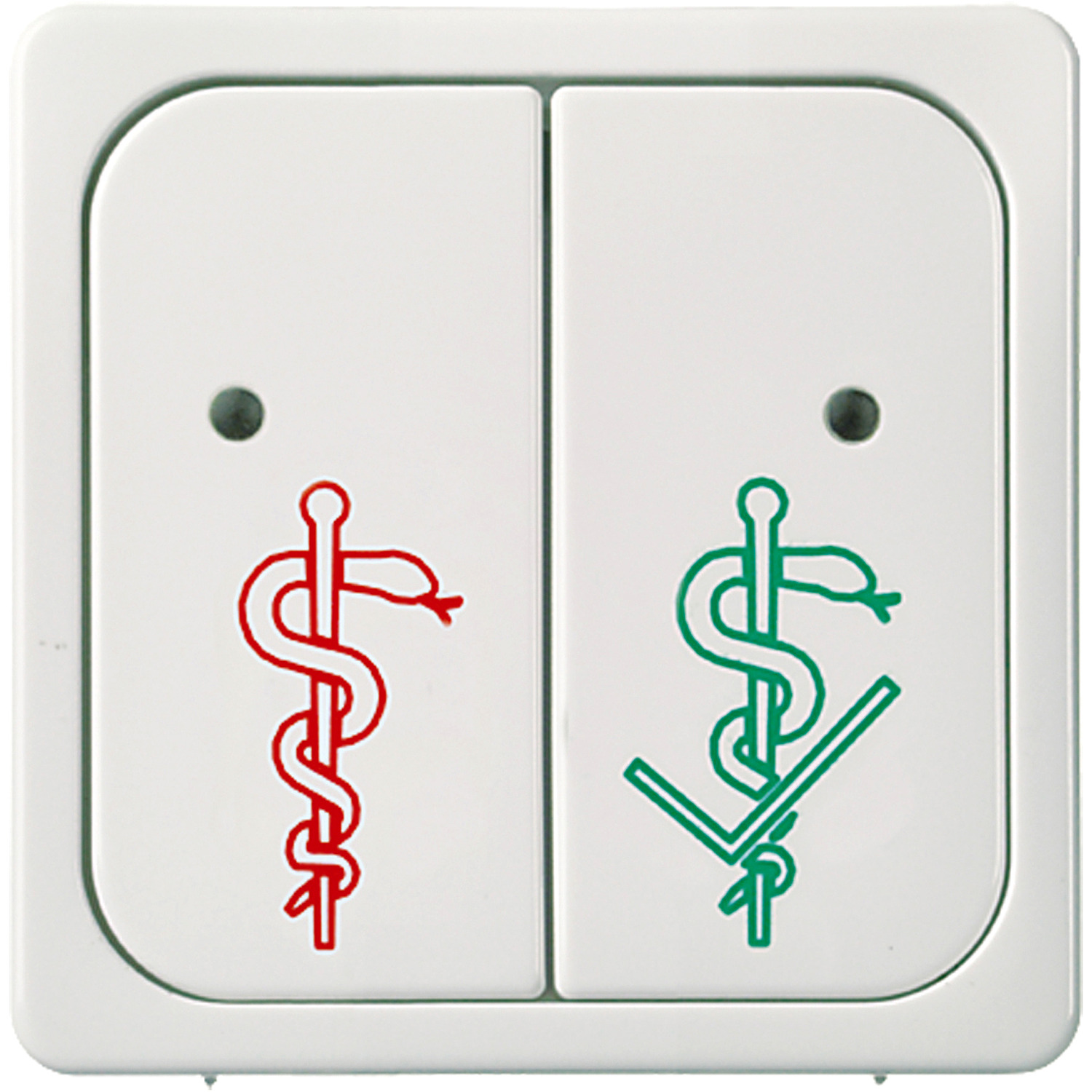 MEDIOPT care. Tastfläche 2-fach für Arztruf-/Abstelltaster (Art. 735070) mit Symbolaufdruck für ELSO JOY, Farbe reinweiß.