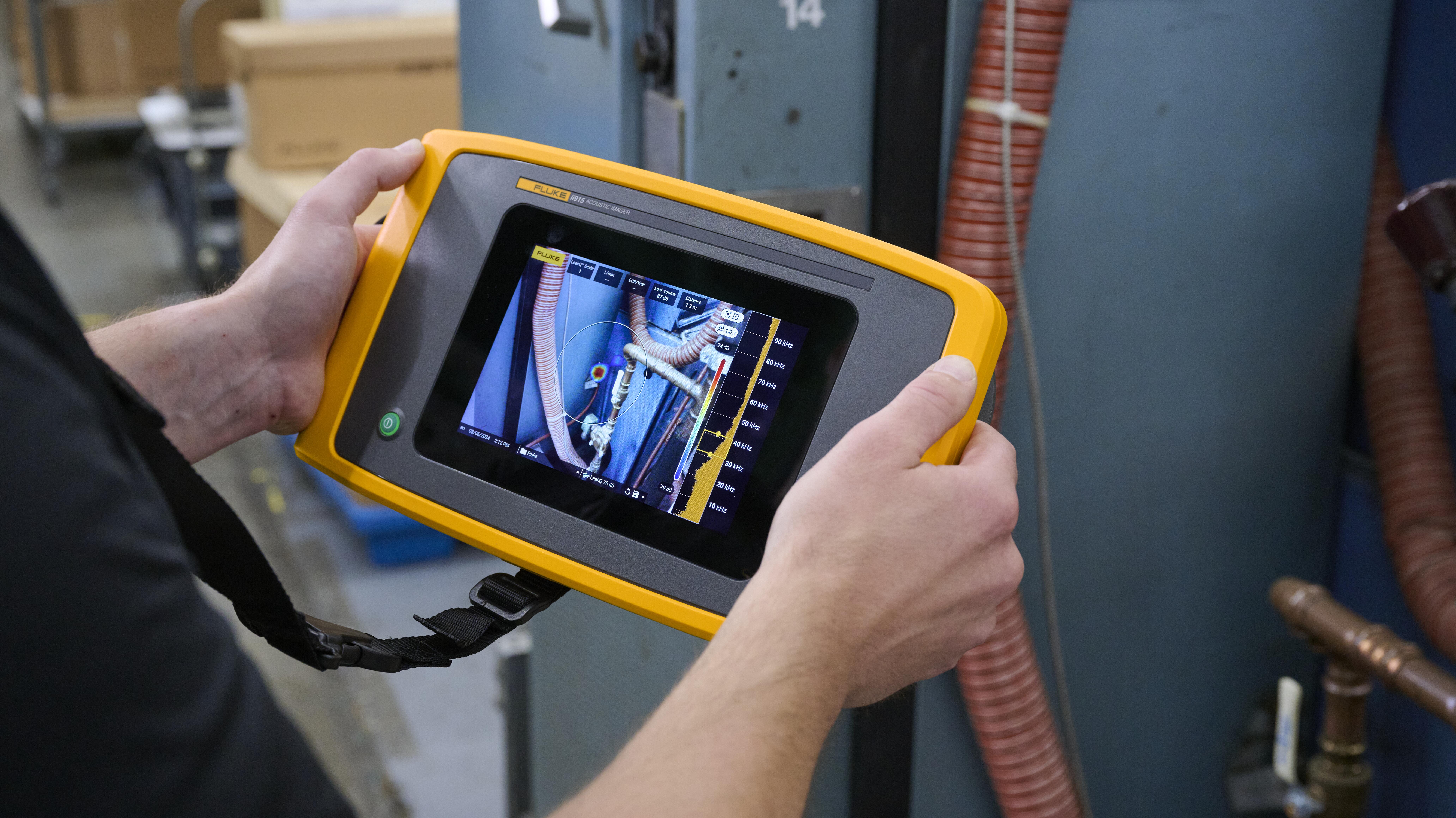 Der Fluke ii915 Acoustic Imager mit LeakQ, PDQ Mode und MecQ Mode unterstützt Wartungsteams bei der Erkennung, Lokalisierung und Bewertung von Leckagen, Teilentladungen und potenziellen mechanischen Anomalien. Die mehrfach preisgekrönte Industrie-Kamera (II) Serie verfügt über eine intuitive, benutzerfreundliche Schnittstelle für schnelles und sicheres Arbeiten des gesamten Wartungsteams. Wartungsteams können potenziellen Problemen zuvorkommen, indem sie große Bereiche effizient scannen. So können die Wartungsteams proaktiv handeln und die Systemleistung maximieren.