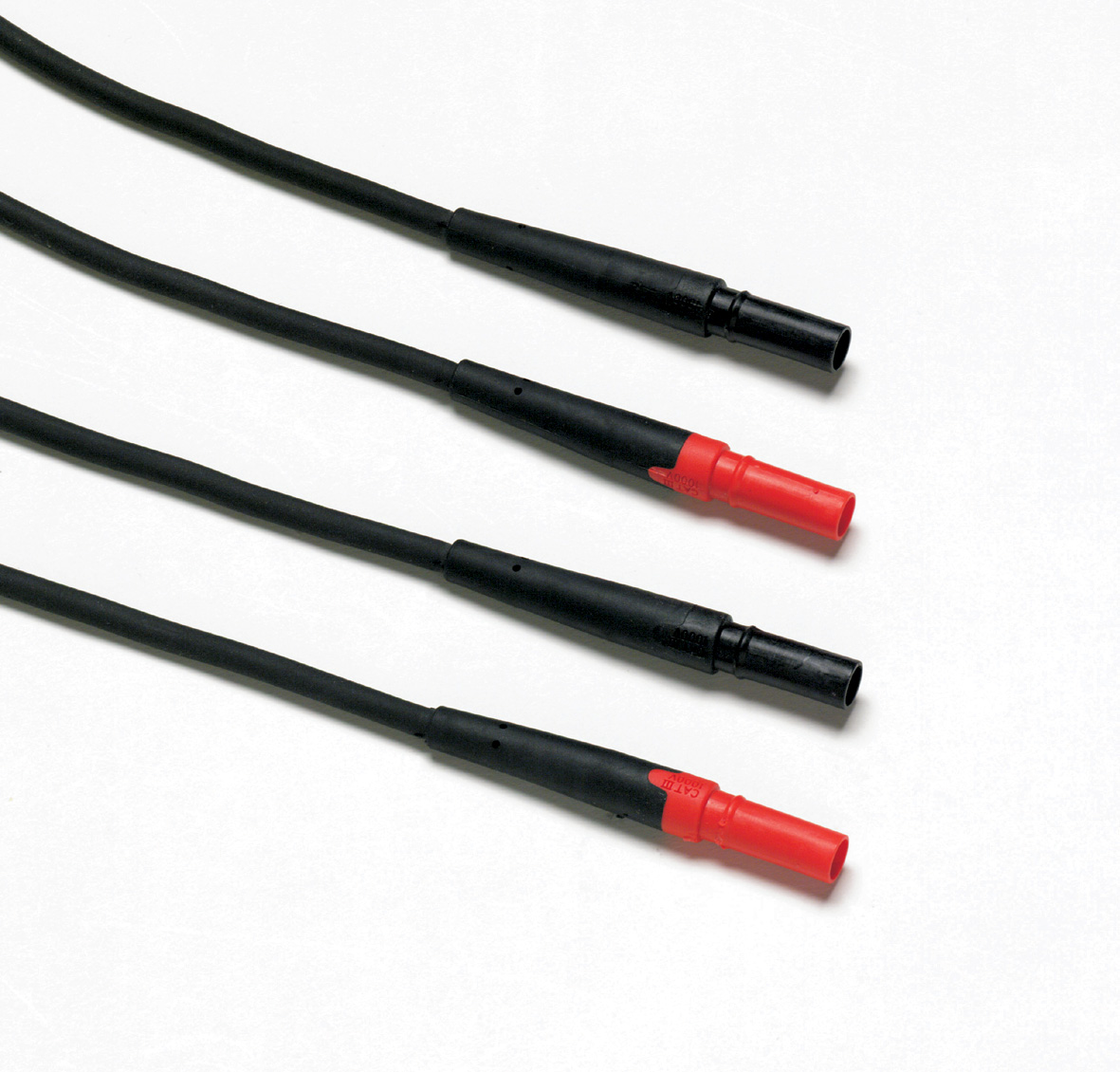 Messleitungen (rot, schwarz) für Digitalmultimeter mit sicherheitsisolierten Bananensteckern mit Standarddurchmesser (4 mm), robuste EPDM-Isolierung, Länge 1,5 m, für CAT III 1000 V, 10 A, UL-gelistet