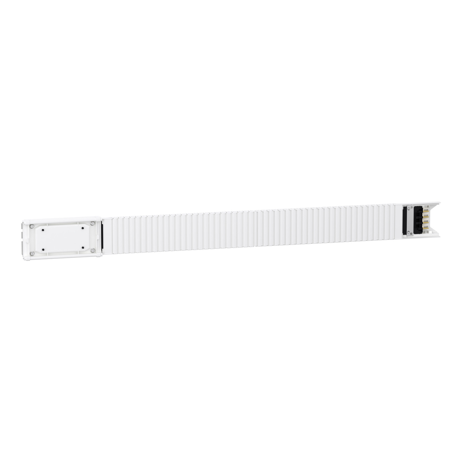 Canalis-Stromschienenverteiler für KNA. Er wird für die Verteilung kleiner Leistungen eingesetzt. Die Betriebsspannung reicht von 230VAC bis 500VAC 50/60Hz. Der Bemessungsbetriebsstrom beträgt 100A bei 35 ?. Es bietet eine weiße Oberflächenbehandlung nach RAL 9001. Montage durch Schrauben auf der linken oder rechten Seite des Kanals. Die Betriebsumgebungstemperatur liegt zwischen 0 °C und 35 °C ohne Leistungsminderung. Ausführung mit 1 Abzweigmöglichkeit. Es bietet ein abgestrahltes Magnetfeld von 186 pT. Es bietet 2 Dimensionen zur Richtungsänderung. Er bietet die Schutzart IP55 gemäß IEC 60529. IK08 ist konform mit EN/IEC 62262. Er ist sowohl mit IEC 60439-2 als auch mit IEC 61439-6 konform. Er ist auch konform mit Green Premium (RoHS/REACH).