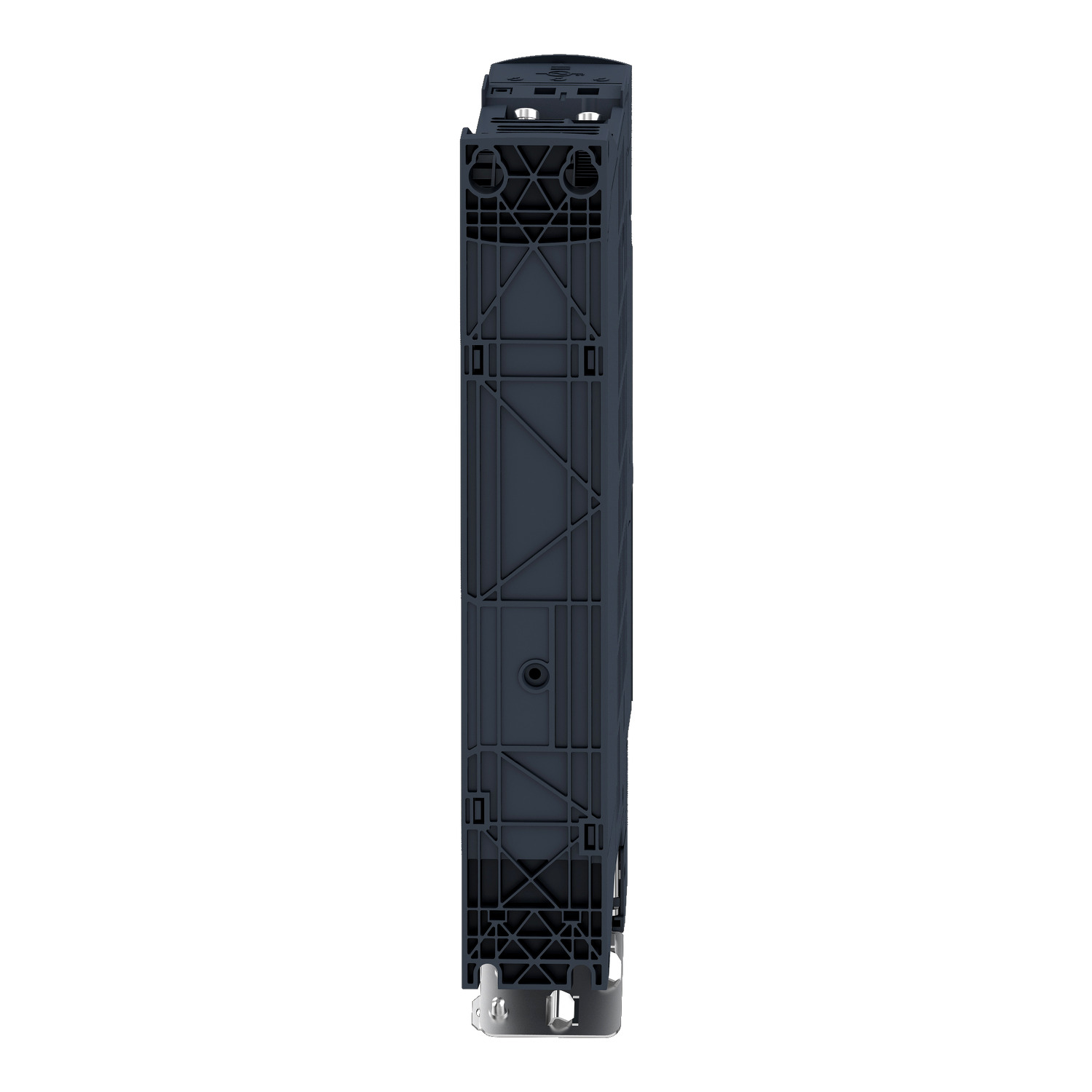 Frequenzumrichter ATV320, Buch. Abmessungen 45 x 325 x 245 mm, Leistung KW 0,55 kW. Versorgungsspannung 3-phasig, 380-500 V 50/60 Hz mit integriertem EMV-Filter. Bemessungsversorgungsspannung, min. U1, max. U2 200 (U1)-240 V (U2), 380 (U1)-500 V (U2). Umrichter werden mit integriertem EMV-Filter der Kategorie C2 geliefert. Der Filter kann abgeschaltet werden. Umrichter werden mit einer EMV-Platte zur kundenseitigen Montage geliefert. Beschreibung Integrierte Sicherheitstechnik mit 5 Funktionen sicher abgeschaltetes Drehmoment (STO), sicherer Halt1 (SS1), sicher reduzierte Geschwindigkeit (SLS), sichere Schütztürzuhaltung (GDL), sichere maximale Geschwindigkeit (SMS). Betrieb von Asynchron- und Synchronmotoren in open loop. SVC Regelung (sensorless vector control) bringt höchste Drehzahlgüte und Stabilität U/F Regelung, U/F2 Regelung, Energiesparfunktion. Max. Frequenz 599 Hz. Einfachste Inbetriebnahme, intuitive Bedienung sowie durch Plug amp; Drive, voreingestellt auf die gängigsten Applikationen. Möglichkeiten zum Laden, Editieren, Sichern der Konfigurationen des Umrichters mit Tools, wie der Inbetriebnahmesoftware SoMove, den dezentralen Terminals und den Konfigurationstools -Simple-Loader- und -Multi-Loader-. Funkentstörfilter Klasse A integriert, deaktivierbar. Für den Betrieb an IT-Netzen. 6 Logikeingänge mehrfach mit Funktionen belegbar, 3 Analogeingänge, davon 2 umschaltbar als Digitaleingänge. Integriertes Bremsmodul ermöglicht den 4-Quadranten-Betrieb ohne Nachrüstung.