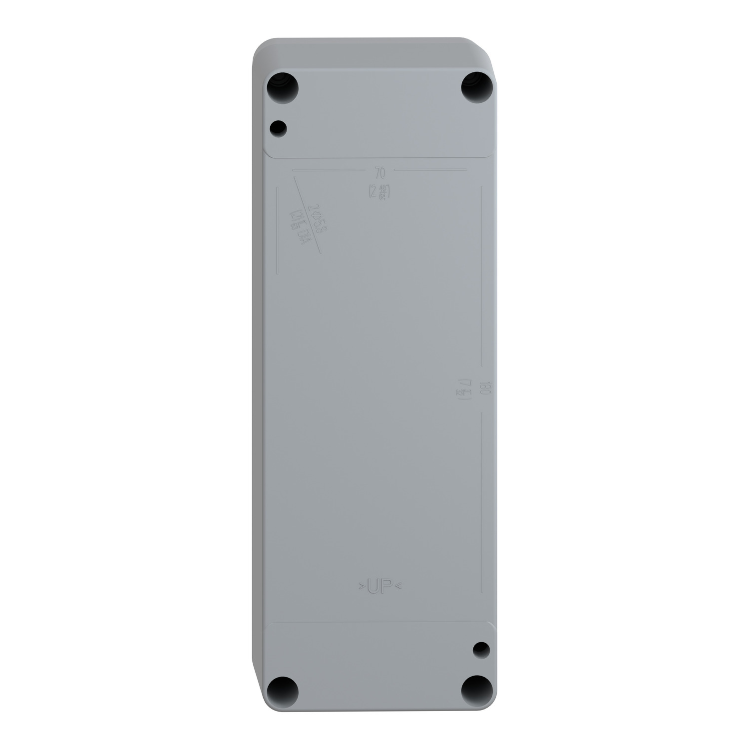 Leeres Steuergehäuse aus Kunststoff, 8 Öffnungen in 2 Spalten. Es ist Teil der Baureihe Harmony XAP, XB2 SL Metallgehäuse, für Harmony XB4.
