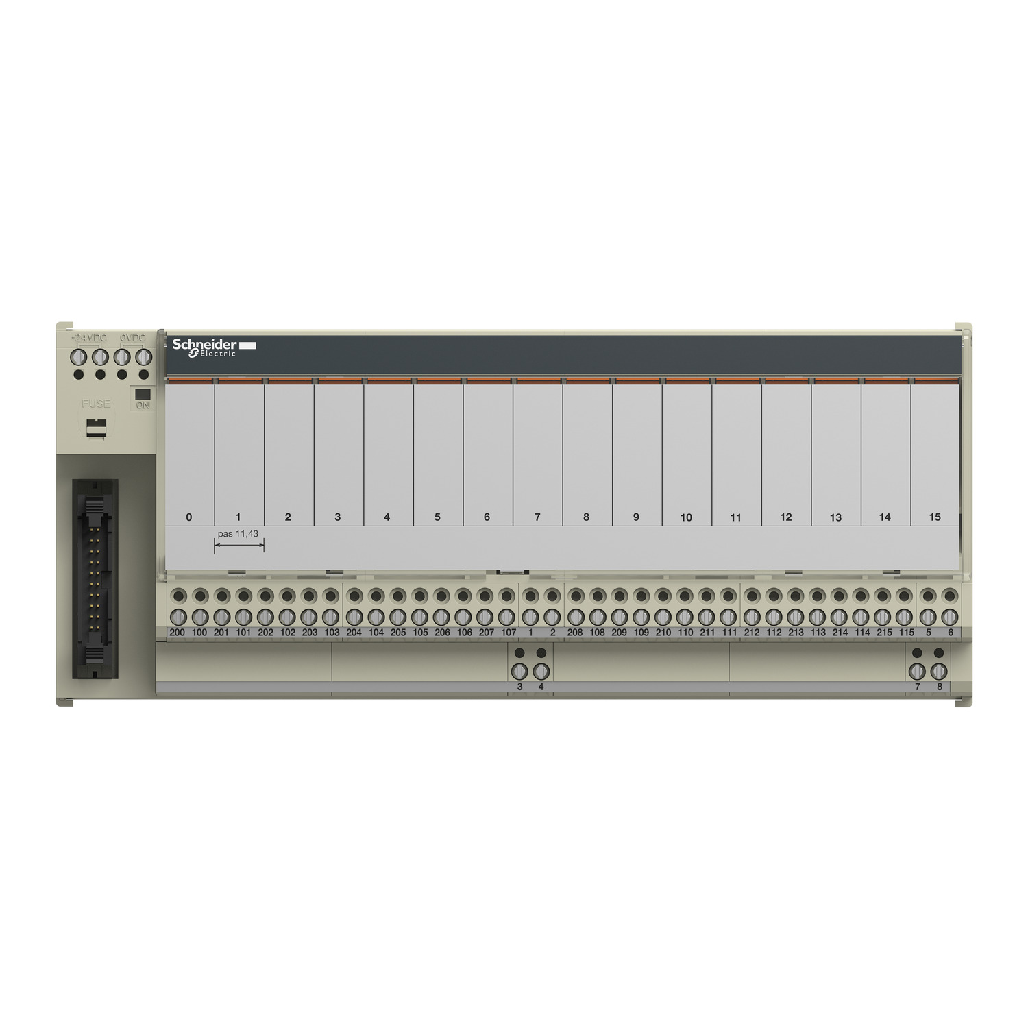 Dieses Produkt ist Teil des Modicon ABE7-Sortiments, einem Angebot an Anschlussgrundplatten für das vorverdrahtete Telefast-System. Die Anschlussplatte mit steckbarem elektromechanischem Relais bietet 16 Kanäle. Es hat einen Schließerkontakt. Dieses Produkt ermöglicht den schnellen Anschluss von E/A-Modulen. Es handelt sich um eine Relaisunterbaugruppe mit einer Versorgungsspannung von 19V bis 30V DC und einem maximalen Versorgungsstrom von 1A. Es ist ein IP2x-zertifiziertes Produkt. Es wiegt 0,735 kg. Es ist für alle Arten von industriellen Anwendungen geeignet. Dieses Produkt ist durch GL, CSA, DNV, BV, LROS und UL zertifiziert. Diese Anschlussplatte ist für die Verwendung mit dem steckbaren Relais ABR7S21 geeignet. Die Befestigung erfolgt mit Klammern (35mm DIN-Schiene) und Schrauben (Aufputzmontage mit Bausatz). Modicon ABE7 vereinfacht die Verdrahtung in Automatisierungssystemen. Vorverdrahtetes System, das den Anschluss und die Anpassung der Steuersignale der mit HE10-Steckern ausgestatteten SPS-Karten ermöglicht.