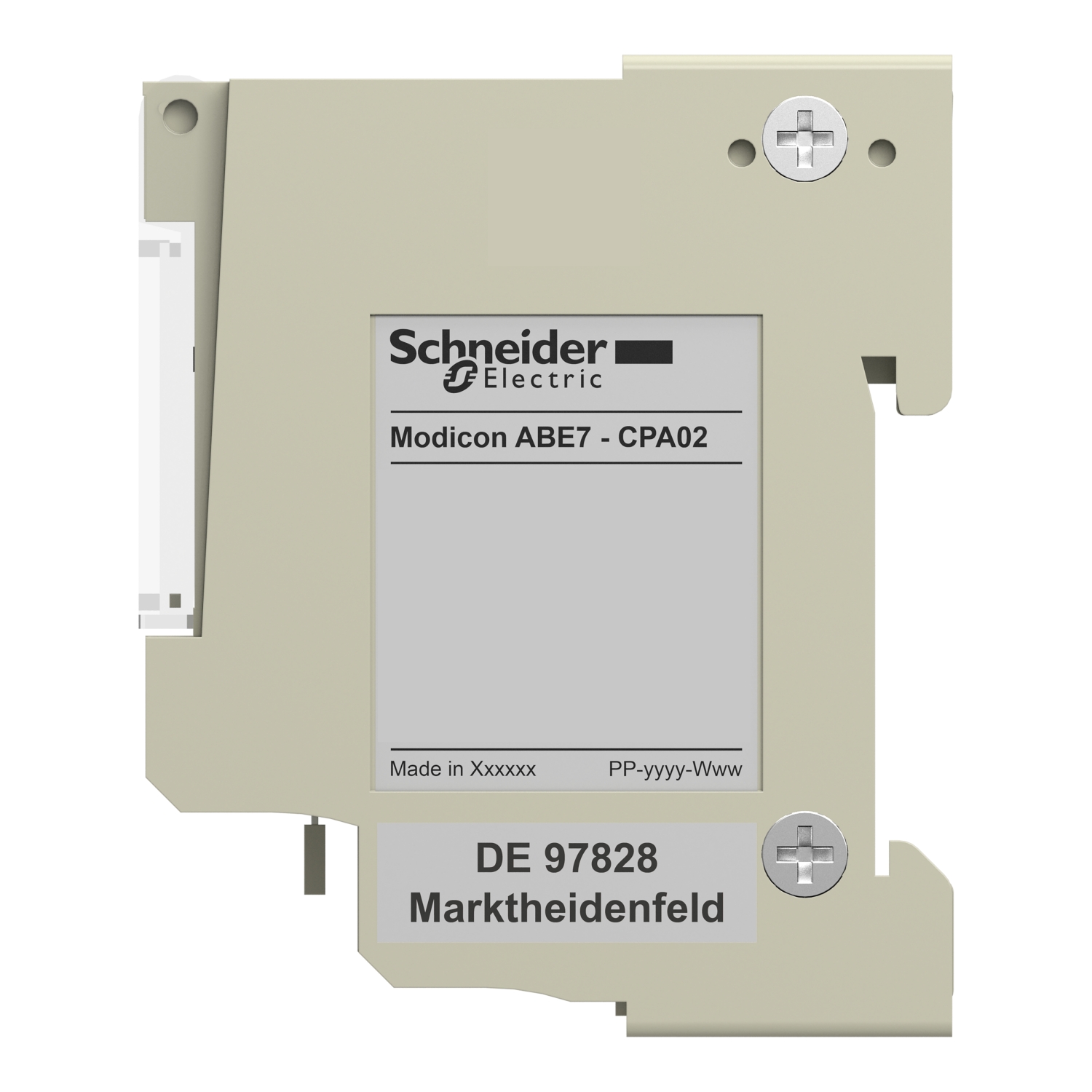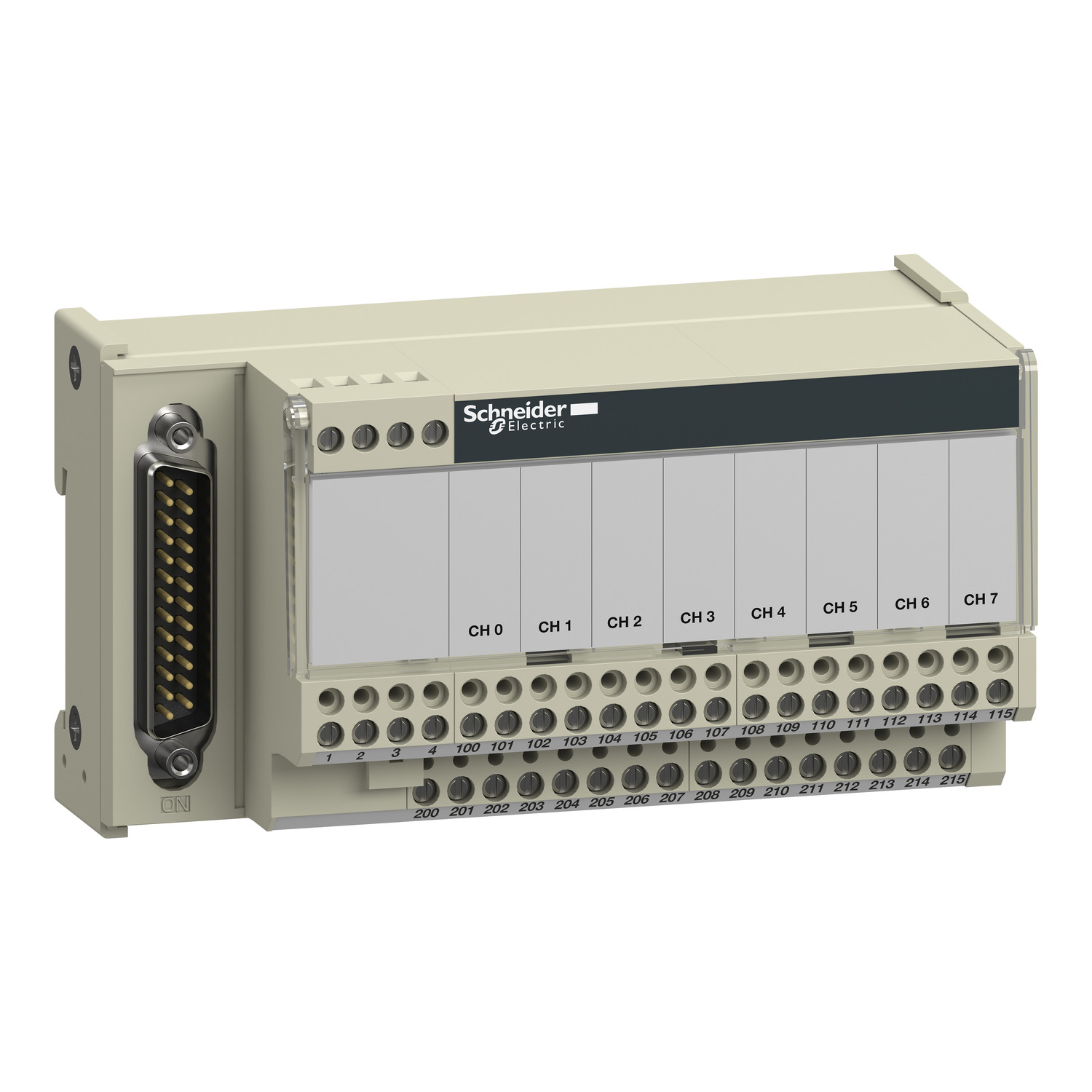 Klemmenblöcke Advantys Telefast ABE 7. Klemmenblock ABE7, zur passiven Umsetzung von 8 Kanälen, für BMXAMI0800, BMXAMI0810, BMXAMO0802. Anschluss Punkt-zu-Punkt- Anschluss von 8 E/A.