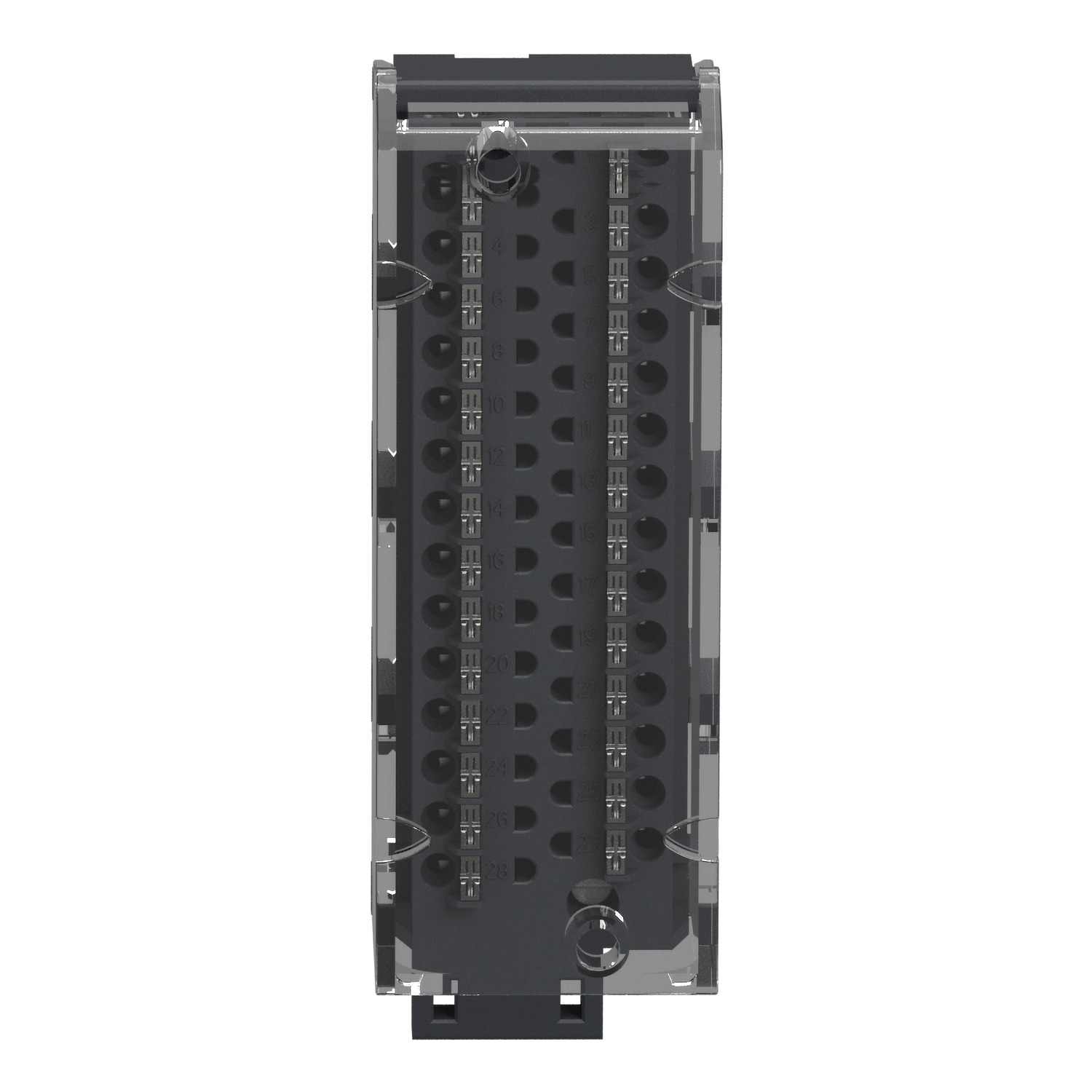 Analoge Ein-/Ausgangsmodule. Anschlusszubehör für analoge Module. Abnehmbarer Federanschlussblock (28 Wege),für BMXAMI0800, BMXAMI0810, BMEAHI0812. Anschluss Federzugklemmen. Die Abschirmung der Kabel für die analogen Signale muss an den Stützpunkt-Bausatz für Kabelabschirmungen. BMX XSPpp00 angeschlossen sein, der sich unterhalb des Modulträgers mit den Analogmodulen befindet.