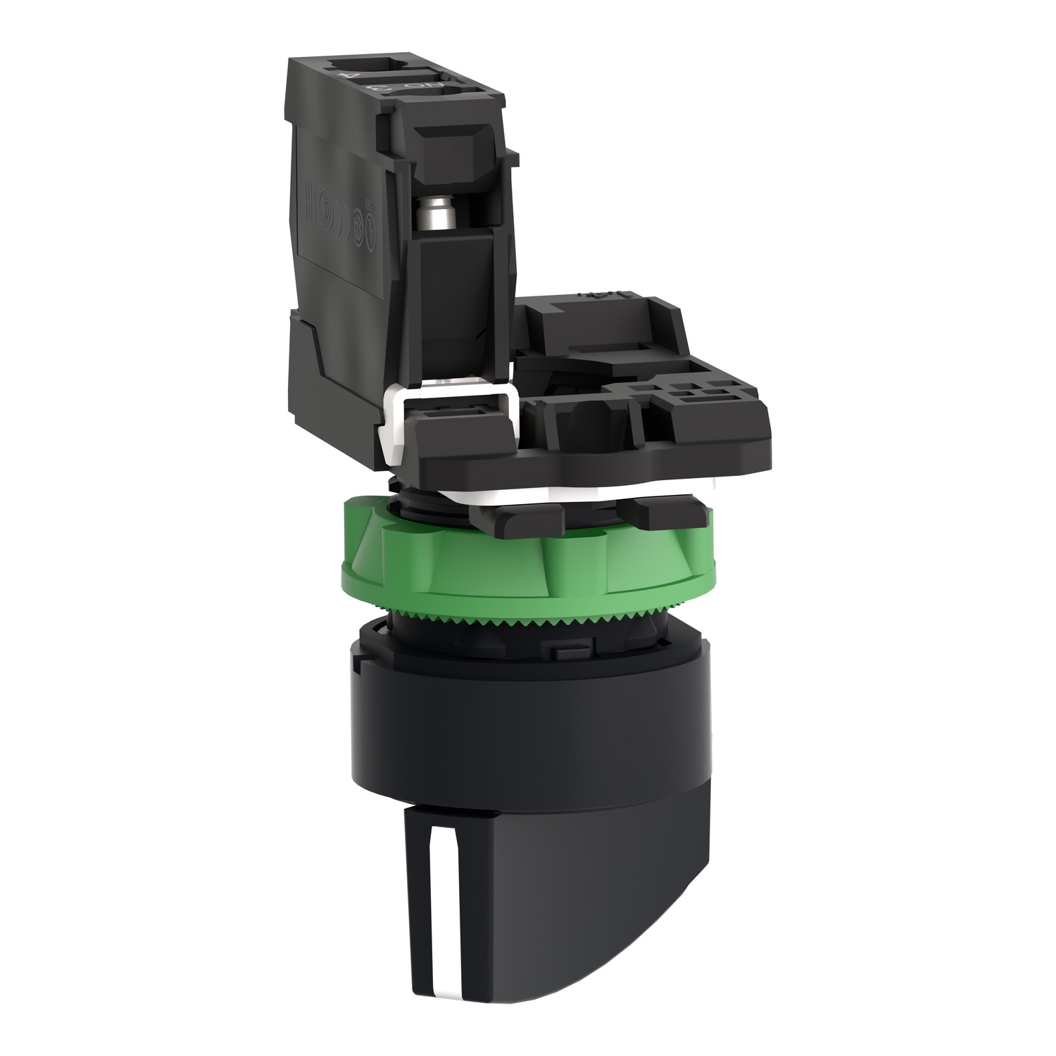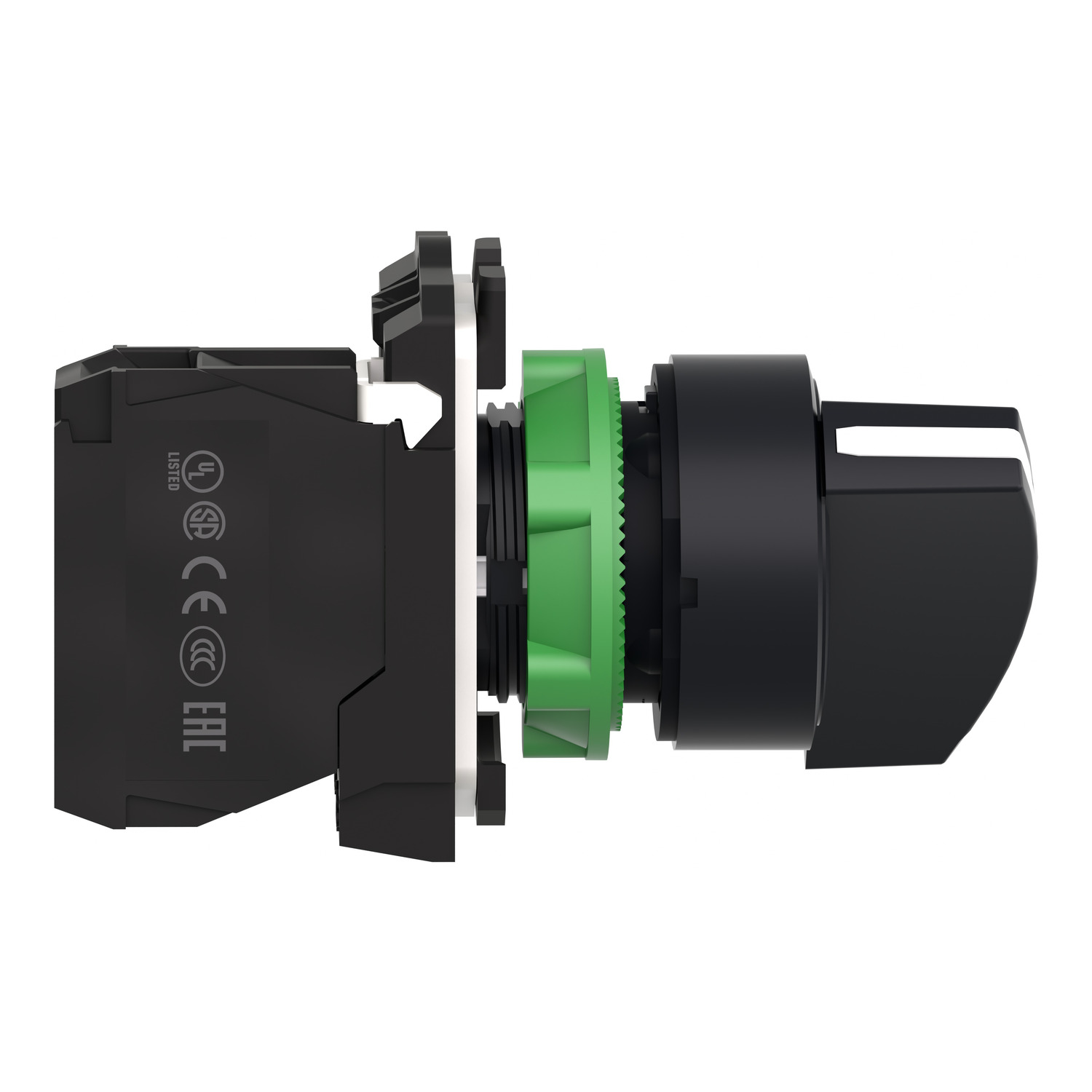 Die Baureihe Harmony XB5 aus Kunststoff bietet eine Vielzahl an 22mm Komplettgeräten wie Drucktaster, Leuchtmelder und Wahlschalter bis hin zum Not-Aus-Schalter. Zusätzlich ist es durch den modularen Aufbau der Geräte möglich, alle Bestandteile auch als Einzelelemente zu beziehen sowie wahlweise auch für 30mm Einbaumaß. Aufgrund der Qualität, der Flexibilität und der extremen Robustheit (Schutzklassen bis IP69K) eignen sich die Geräte ideal für die meisten Anwendungen in der Industrie und in Gebäuden. Montiert in einer 22mm Bohrung erfolgt der Anschluss des Geräts durch Schraubklemmen auf der Rückseite des Produkts. Dieser Wahlschalter verfügt über 1 Schließer. Aufgrund der Vielzahl von vorhandenen Produktstandards und Zertifizierungen geeignet für den internationalen Einsatz. Dank des Green Premium Umweltzeichens können Sie detaillierte Informationen zu Materialinhalten, Umweltauswirkungen und Kreislaufwirtschaft erhalten, die Ihre Nachhaltigkeitsziele unterstützen.