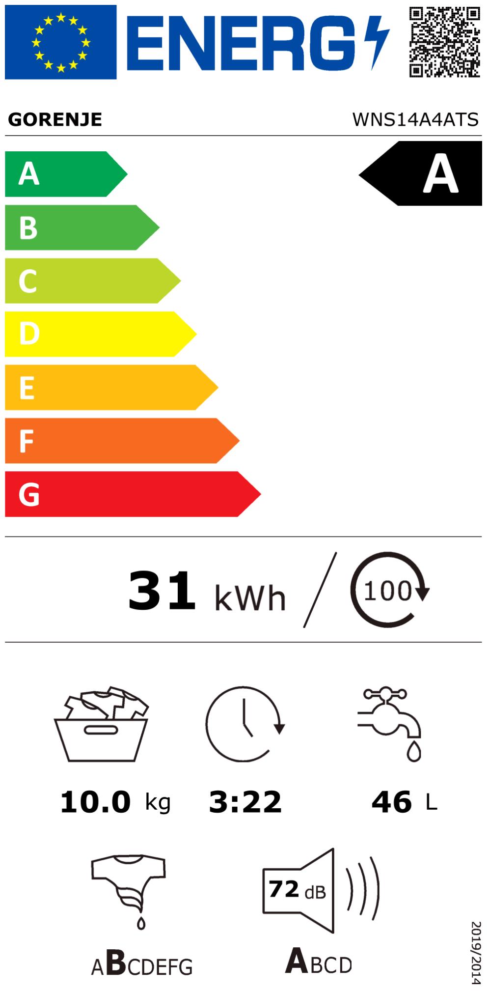 WNS14A4ATS Stand-Waschmaschine-Frontlader weiss