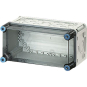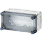 Schutzart IP 54 mit Einsteckstutzen, IP65 mit Anbaustutzen, zur Aufnahme von Geräten über Gerätetragschienen oder Montageplatten, aus Thermoplast, grau nach RAL 7032, Deckel mit Verschlüssen für Werkzeugbetätigung.