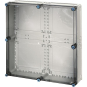 Schutzart IP 54 mit Einsteckstutzen, IP65 mit Anbaustutzen, zur Aufnahme von Geräten über Gerätetragschienen oder Montageplatten, aus Thermoplast, grau nach RAL 7032, Deckel mit Verschlüssen für Werkzeugbetätigung.