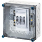 Schutzart IP65, aus Thermoplast, grau nach RAL 7032, transparente Deckel mit Verschlüssen für Werkzeugbetätigung, Sicherungslasttrenner Größe NH 00,