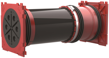 Doppel-Dichtpackung, längenverstellbar, zum Einbetonieren Für den schalungsbündigen Einbau, ermöglicht den beidseitigen gas- und wasserdichten Anschluss von Systemabdichtungen für Kabel und Kabelschutzrohre. Die Paketbildung ist vor Ort möglich. Für den Einsatz in Doppel-/Elementwänden geeignet.