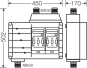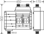 Gehäuse für den Bau von Energie-Schaltgerätekombinationen bis 630 A oder als Einzelgehäuse. Aus hochwertigem Polycarbonat schutzisoliert. Wanddurchführungen mit großen Öffnungen für die elektrische Verbindung der Gehäuse untereinander. Kabeleinführung an allen Gehäusewänden über metrische Vorprägungen oder Anbauflansche. Gehäuse zur Wandbefestigung auch über Außenlaschen oder mit Montageschienen. Anschlussfertiger Hauptleitungsverteiler für den Vorzählerbereich, plombierbar, mit 2 Sicherungslasttrennschaltern NH 00, 3-polig, auf 5-poligem Sammelschienensystem 250 A. Einsatz im ungemessenen Bereich nach Absprache mit örtlichem Netzbetreiber.