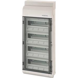 Kleinverteiler aus hochwertigem Thermoplast. Für Aufputz-Anwendungen in Gebäuden oder der geschützten Installation im Freien. Mit kompakt integrierten N-Trennklemmen in FIXCONNECT— NT-Steckklemmentechnik. Automatengehäuse, zum Einbau von Geräten mit Schnappbefestigung auf DIN-Tragschiene. Kabeleinführung über integrierte elastische Dichtmembranen. Mit transparenter Tür und Kabeleinführungsblende, integriertem Zubehörfach und Abdeckstreifen für den Geräteausschnitt. Schutzart IP 65.