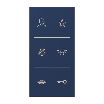 für die Serie LS mit Symbolen bedruckt zum Aufklipsen auf Video-Innenstation (Art.-Nrn.: SI VI LS 627 .., SI VI AL 627, SI VI ES 627) bzw. Tastmodule (Art.-Nrn.: SI TM LS 5073, SI TM LS 5093) Maße: 33 x 70,5 mm Les Couleurs® Le Corbusier