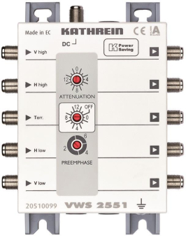 - Schrittweise einstellbare Vorentzerrung (2/4/6 dB) im Sat-Bereich (alle Sat-Zweige werden gleichzeitig eingestellt)