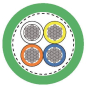 Vielfältige Applikationen mit Industrial Ethernet, z. B. PROFINET, d. h. feste Verlegung, flexibler Einsatz sowie TORSION., Anlagen-, Apparatebau, geeignet für EtherCAT und EtherNet/IP Applikationen, Torsionsfähige Industrial Ethernet-Leitung, 2-paarig, für PROFINET-Anwendungen Typ C, industrieller Einsatz, Einsatz in trockenen oder feuchten Räumen, Litzenleiter, verzinnt, AWG22 (19-drähtig), PE Aderisolation, Sternvierer, Mantel aus Polyurethan (PUR), grün (RAL 6018), Abschirmungsgeflecht aus verzinnten Kupfer-Drähten, Vliesbewicklung, UL AWM (Style 21161), halogenfrei nach VDE 0472-815, flammwidrig nach IEC 60332-1-2, Leitung geeignet für Einsatz mit Torsion. Getested mit mehr als 1 Million Biegezyklen und einer Rechts/Links-Bewegung von 180° pro Meter, Außenmantel hoch abriebfest, CAT.5-Performance, 2x2xAWG22/19