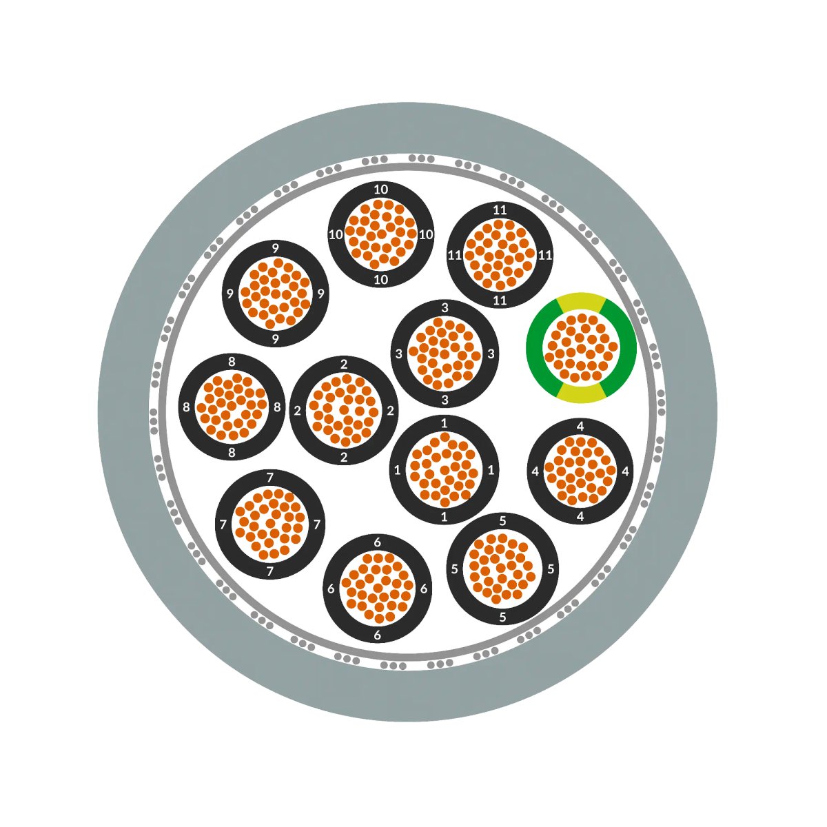Leitungsaufbau erlaubt flexiblen, moderat dauerbewegten Einsatz in beweglichen Maschinenteilen und in der Schleppkette. Für die Verwendung in Steuer-, Regelungs- und Messstromkreisen. Speziell für Umgebungen, in denen elektromagnetische Verträglichkeit (EMV) gefordert ist. Leitungsaufbau auch für Torsionsanwendungen in Windkraftanlagen geeignet. Einsetzbar in trockenen, feuchten und nassen Räumen. Für leichte mechanische Beanspruchung geeignet. PVC-Außenmantel ist beständig gegenüber Säuren und Laugen und bedingt ölbeständig. Leitungsaufbau erlaubt flexiblen, moderat dauerbewegten Einsatz in beweglichen Maschinenteilen und in der Schleppkette. Für die Verwendung in Steuer-, Regelungs- und Messstromkreisen. Speziell für Umgebungen, in denen elektromagnetische Verträglichkeit (EMV) gefordert ist. Leitungsaufbau auch für Torsionsanwendungen in Windkraftanlagen geeignet. Einsetzbar in trockenen, feuchten und nassen Räumen. Für leichte mechanische Beanspruchung geeignet. PVC-Außenmantel ist beständig gegenüber Säuren und Laugen und bedingt ölbeständig.