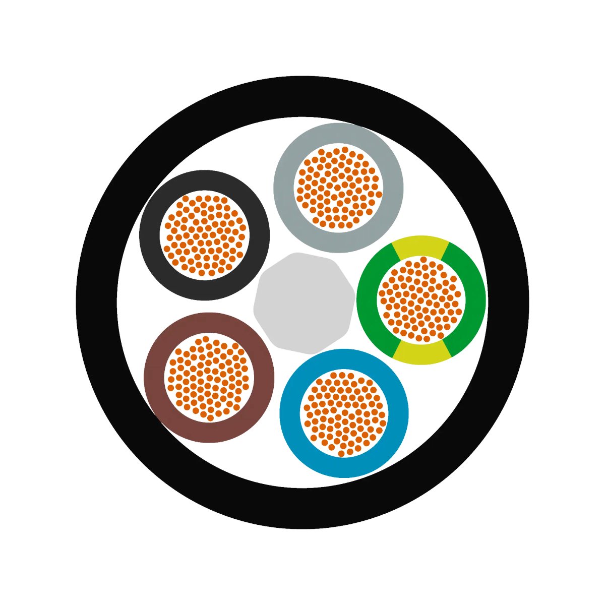 Leiteraufbau feindrähtig nach VDE 0295 Kl. 5/IEC 60228 Cl. 5