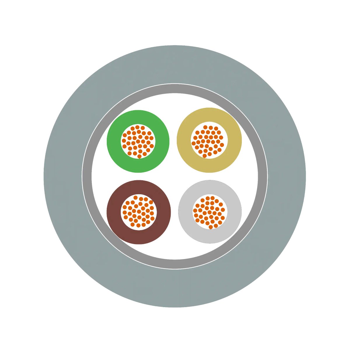 Litzenleiter blank feinstdrähtig, PVC-Aderisolation, Adercode nach DIN 47100, PVC-Außenmantel, silbergrau (RAL 7001), adhäsionsfrei, flammwidrig nach IEC 60332-1-2