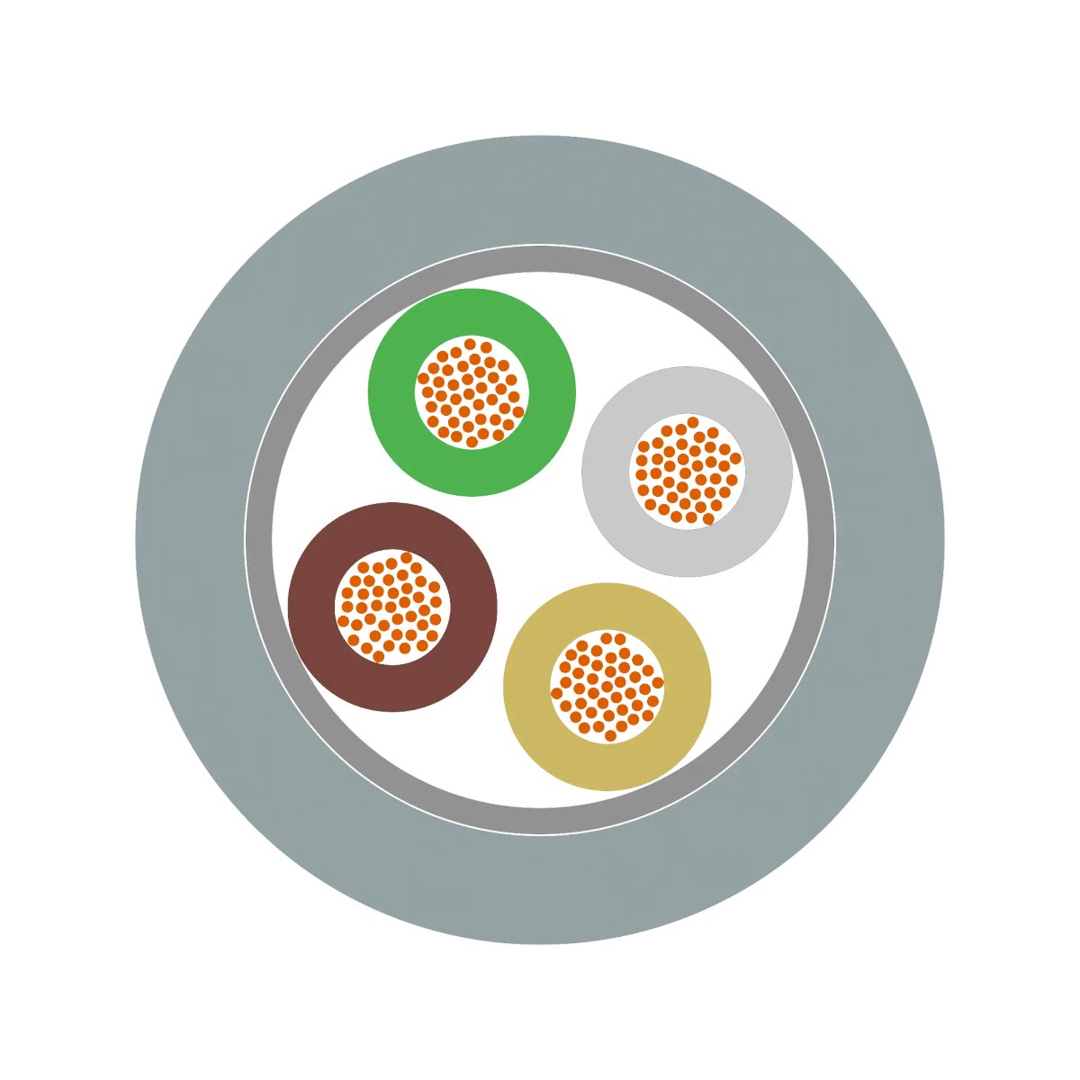 Litzenleiter blank feinstdrähtig, PVC-Aderisolation, Adercode nach DIN 47100, PVC-Außenmantel, silbergrau (RAL 7001), adhäsionsfrei, flammwidrig nach IEC 60332-1-2