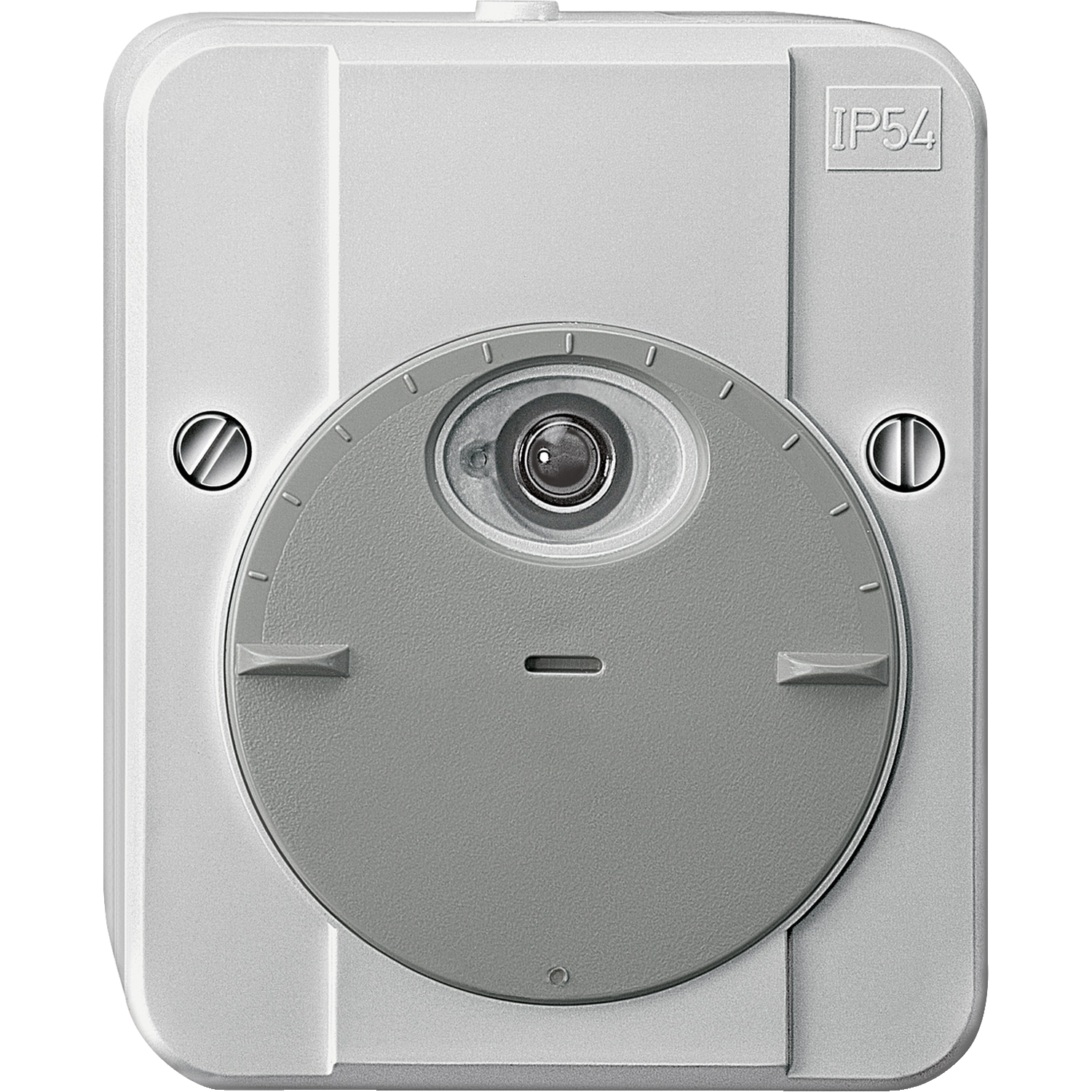 Wassergeschütztes Aufputz-Gerät mit schlagfestem Gehäuse. Mit Zeitfunktion. Die Dämmerungszeitschaltuhr vereinigt die Funktionen eines Dämmerungsschalters und einer Zeitschaltuhr in einem Gerät.