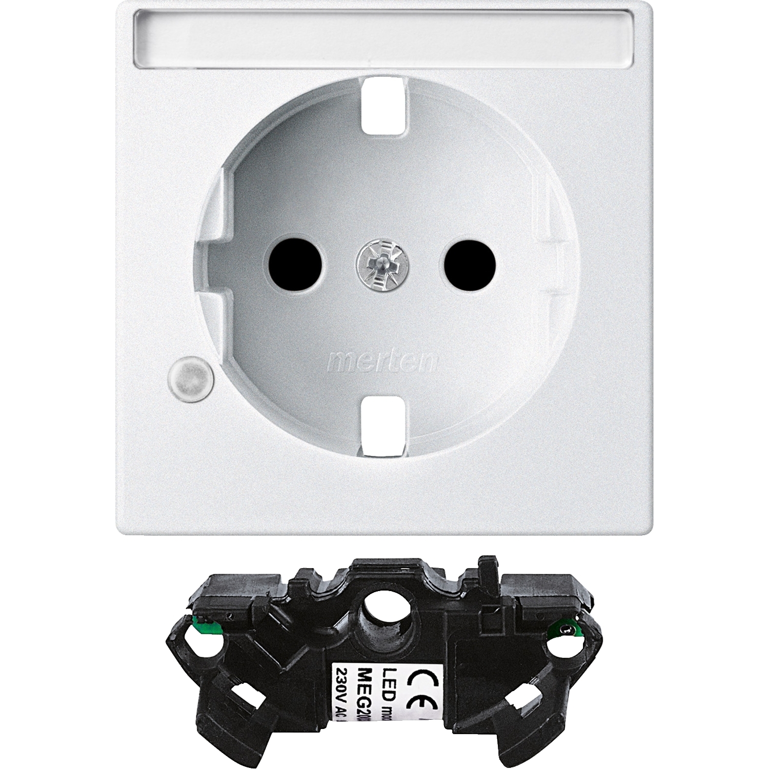 Integrierter erhöhter Berührungsschutz gemäß VDE 0620 Teil 1. Erweiterungsmodul für alle QuickFlex-Steckdosen. Zentralplatte mit Linse für das Kontrolllicht. Die grüne LED leuchtet bei anliegender Netzspannung. Ersatzteil LED-Kontrolllicht-Modul MEG2003-0004. Material Thermoplast edelmatt. Farbe polarweiß.
