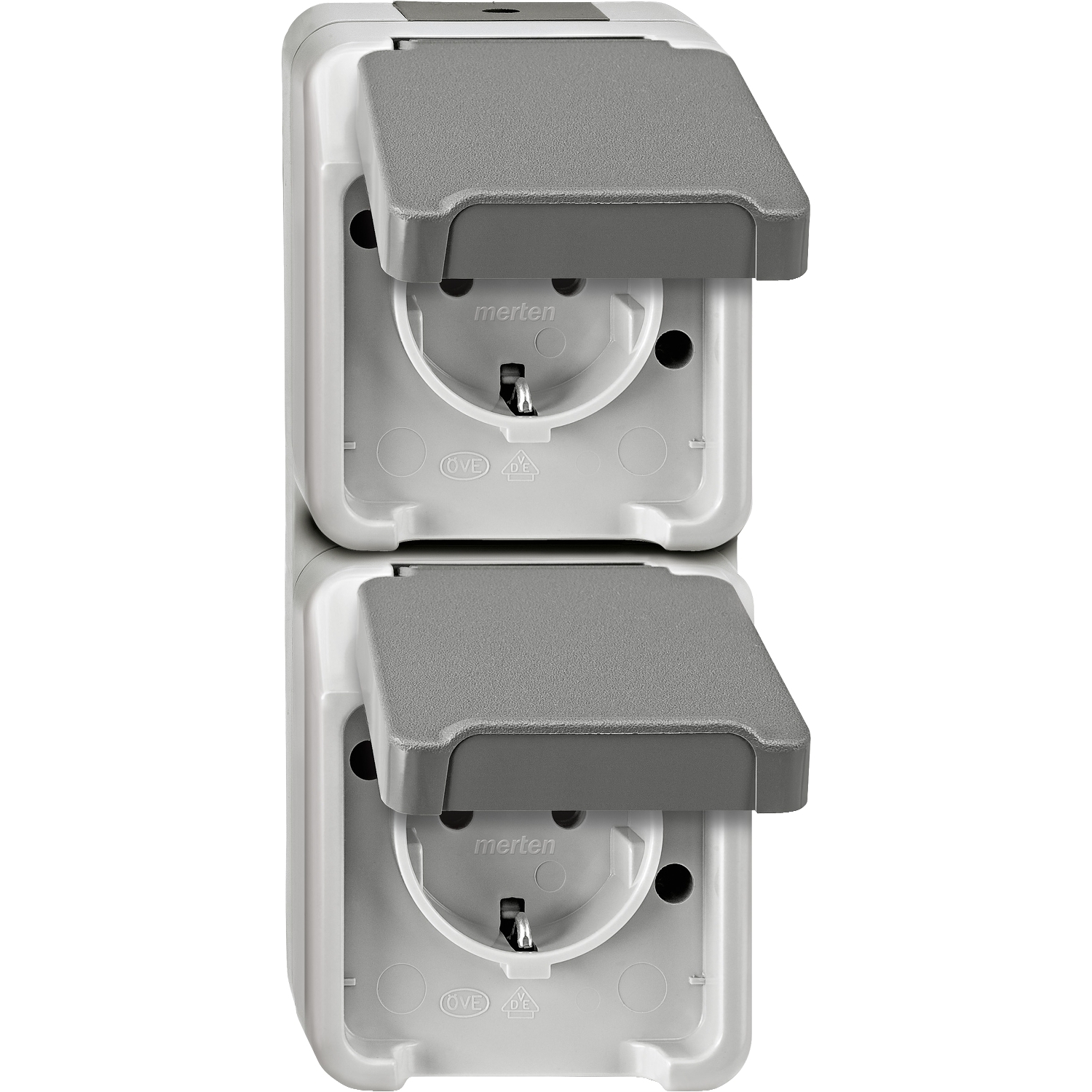 SCHUKO-Doppel-Steckdose, senkrecht angeordnet mit erhöhtem