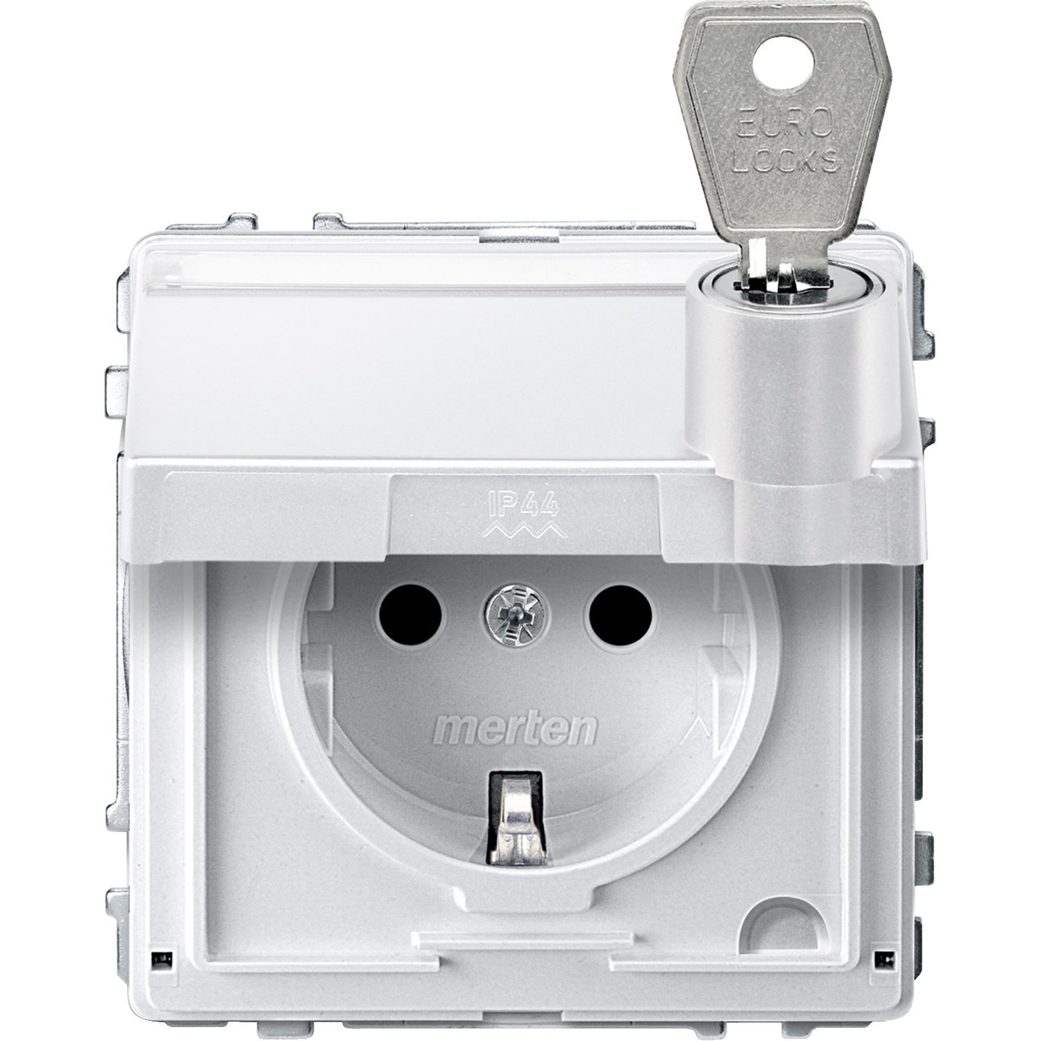 SCHUKO-Steckdose mit Klappdeckel und Schriftfeld, abschließbar