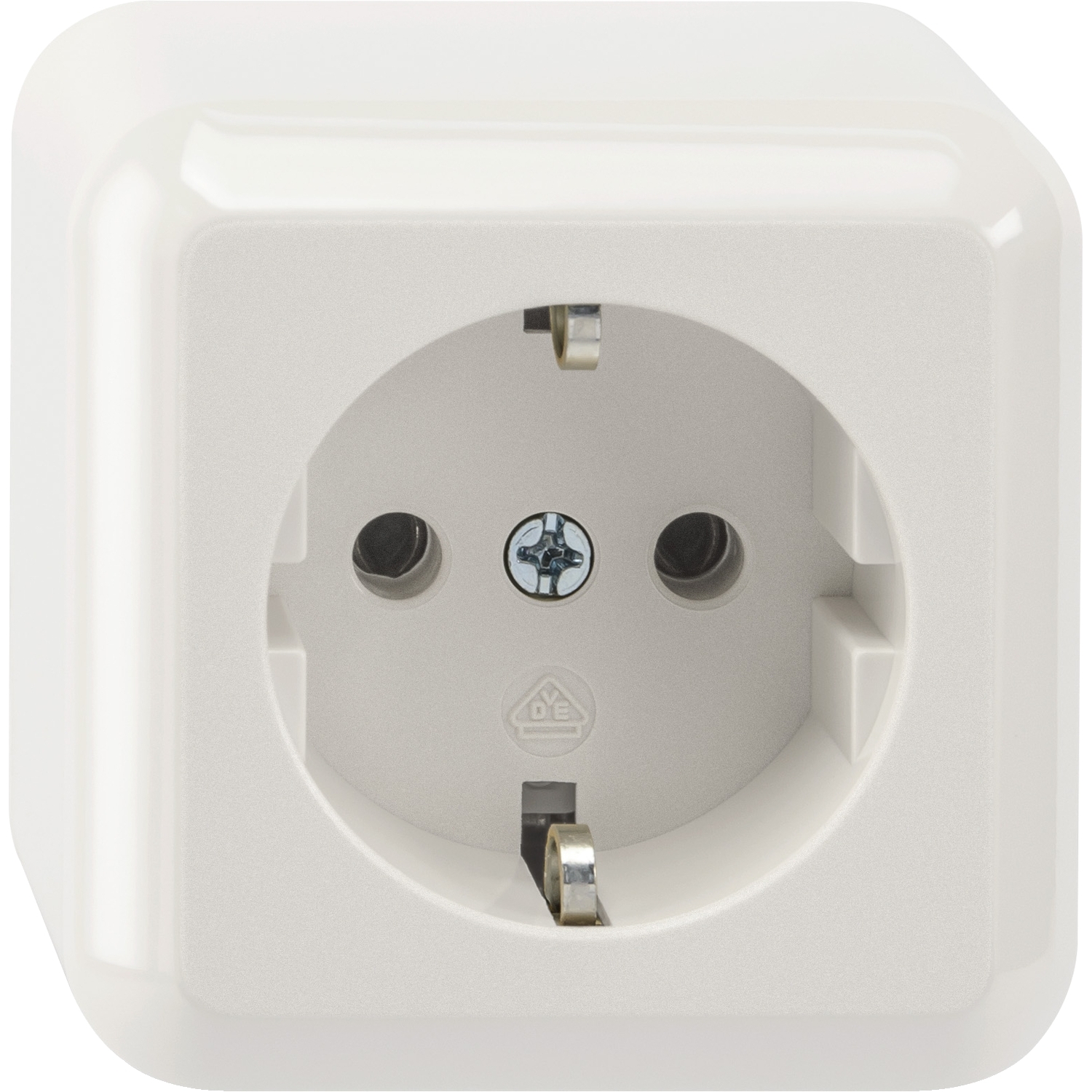 Integrierter erhöhter Berührungsschutz gemäß VDE 0620 Teil 1. Aufputz-Montage. Mit Schraubbefestigung. Mit Steckklemmen. Farbe polarweiß.