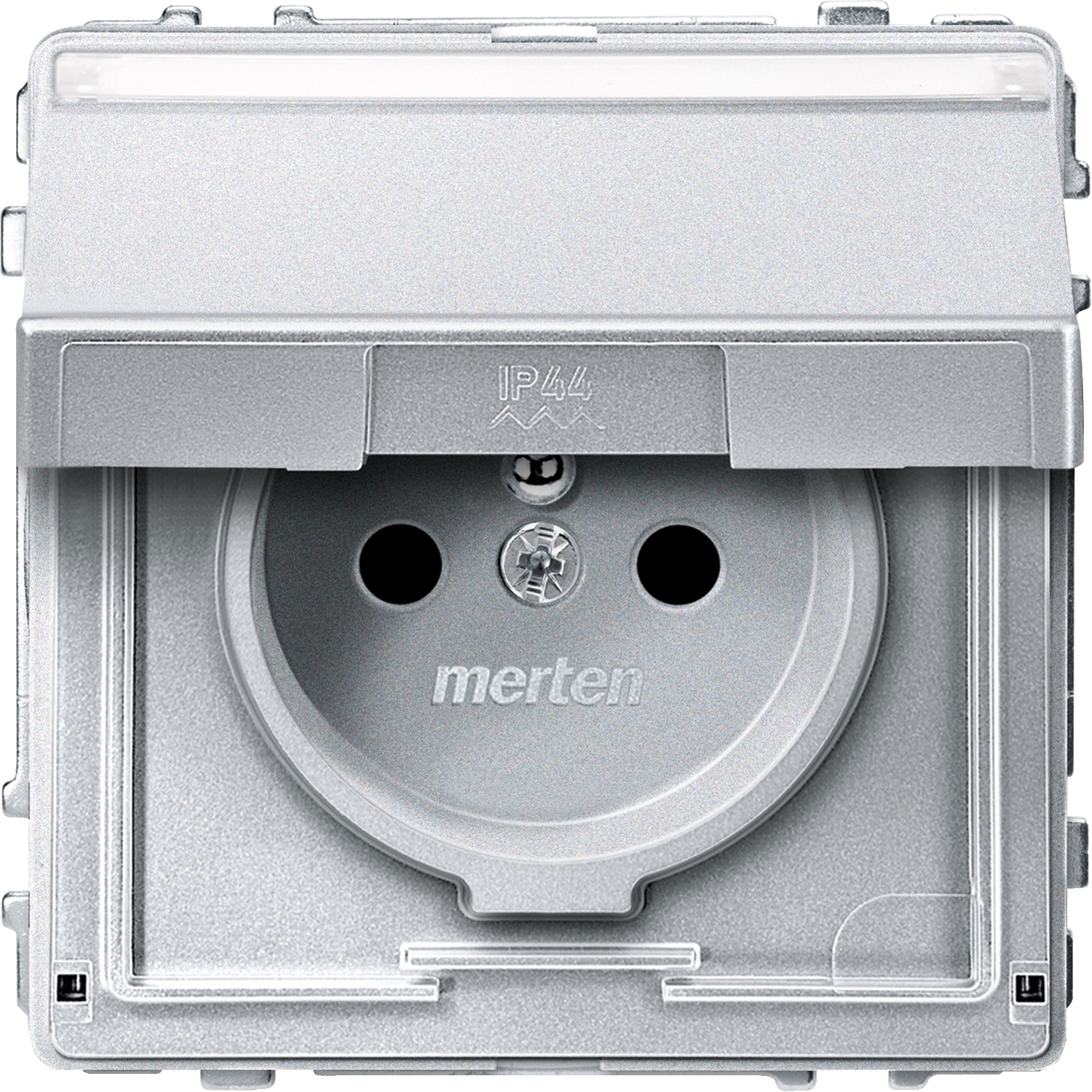 Integrierter erhöhter Berührungsschutz gemäß VDE 0620 Teil 1. Eigenschaften-Frontseitiges Nachrüsten von QuickFlex-Zusatzmodulen ohne Demontage der Steckdose. Schnellgewindeschrauben für die Krallenbefestigung. Versenkte Krallen mit Rückstellfeder. Hochglanzverzinkter Tragring isoliert zur Kralle. Mit Krallen- und Schraubbefestigung. Mit Schraub-Liftklemmen für starre und flexible Leiter bis 4 mm². Zubehör Großes Schriftfeld mit tastbaren Kontrast-Symbol für Wippen und Steckdosen mit Schriftfeld 434791/92/93/94. Farbe aluminium.