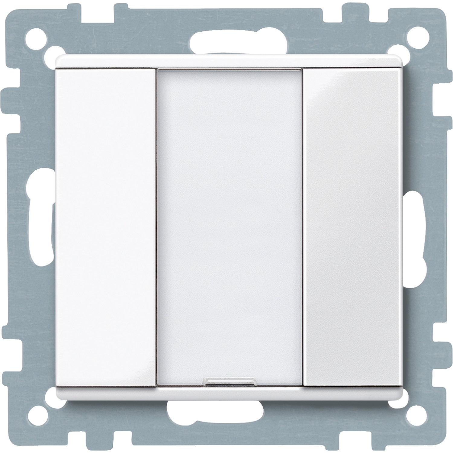Mit integriertem Busankoppler. Taster mit 2/4/8 Bedientasten, Betriebs-, Statusanzeige und Schriftfeld. Die Betriebsanzeige kann auch als Orientierungslicht verwendet werden.