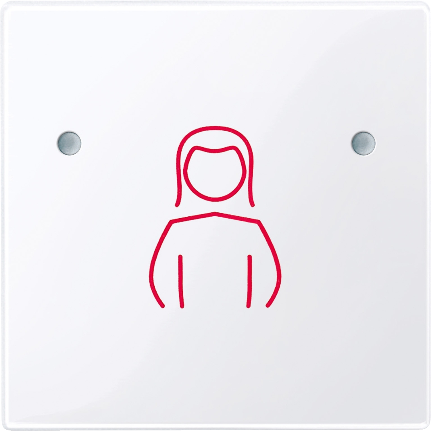 Im Design System M. Für ELSO Ruftastereinsatzxx ELSO Art.-Nr. 735090. Material Thermoplast brillant, antibakteriell. Glatte und selbstdesinfizierende Oberfläche mit antibakterieller Wirkung. Farbe ähnlich RAL 9016. Farbe aktivweiß glänzend.
