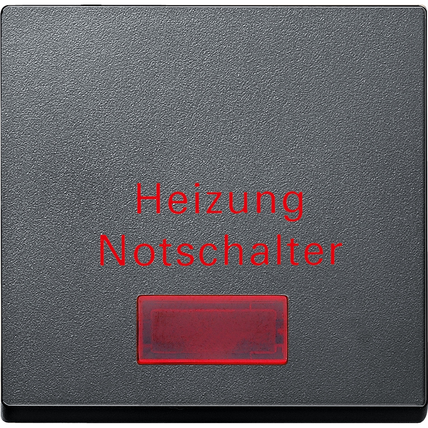 Für Kontrollschalter- und Taster-Einsatz. Mit rotem Kontrollfenster und Aufdruck /Heizung Notschalter/. Zu komplettieren mit Schalter und Taster, 1-fach. Material Thermoplast edelmatt. Farbe anthrazit.
