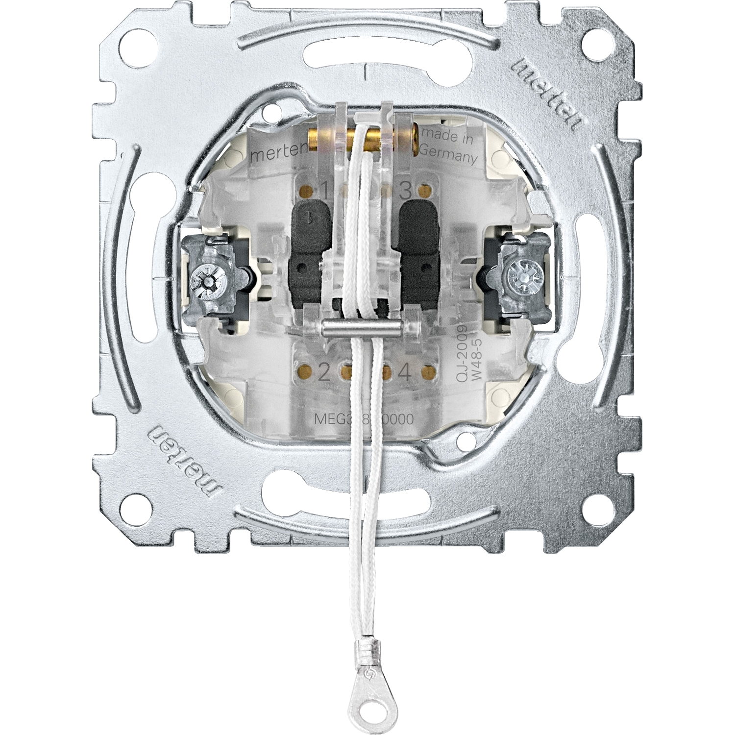 Eigenschaften-Frontseitiges Nachrüsten von QuickFlex-Beleuchtungsmodulen ohne Schalterdemontage. Frontseitige Mess- und Prüfkontakte, zugänglich ohne Schalterdemontage. Schnellgewindeschrauben für die Krallenbefestigung. Versenkte Krallen mit Rückstellfeder. Hochglanzverzinkter Tragring isoliert zur Kralle. Mit Krallen- und Schraubbefestigung. Mit Steckklemmen. Zu komplettieren mit Zentralplatte mit Kontrollfenster für Zugschalter System M MEG3380-03xx /-04xx Zubehör LED-Beleuchtungs-Modul für Schalter/Taster MEG3901-0000, MEG3901-0006, MEG3921-0000. Ausführung 10 AX, AC 250 V.