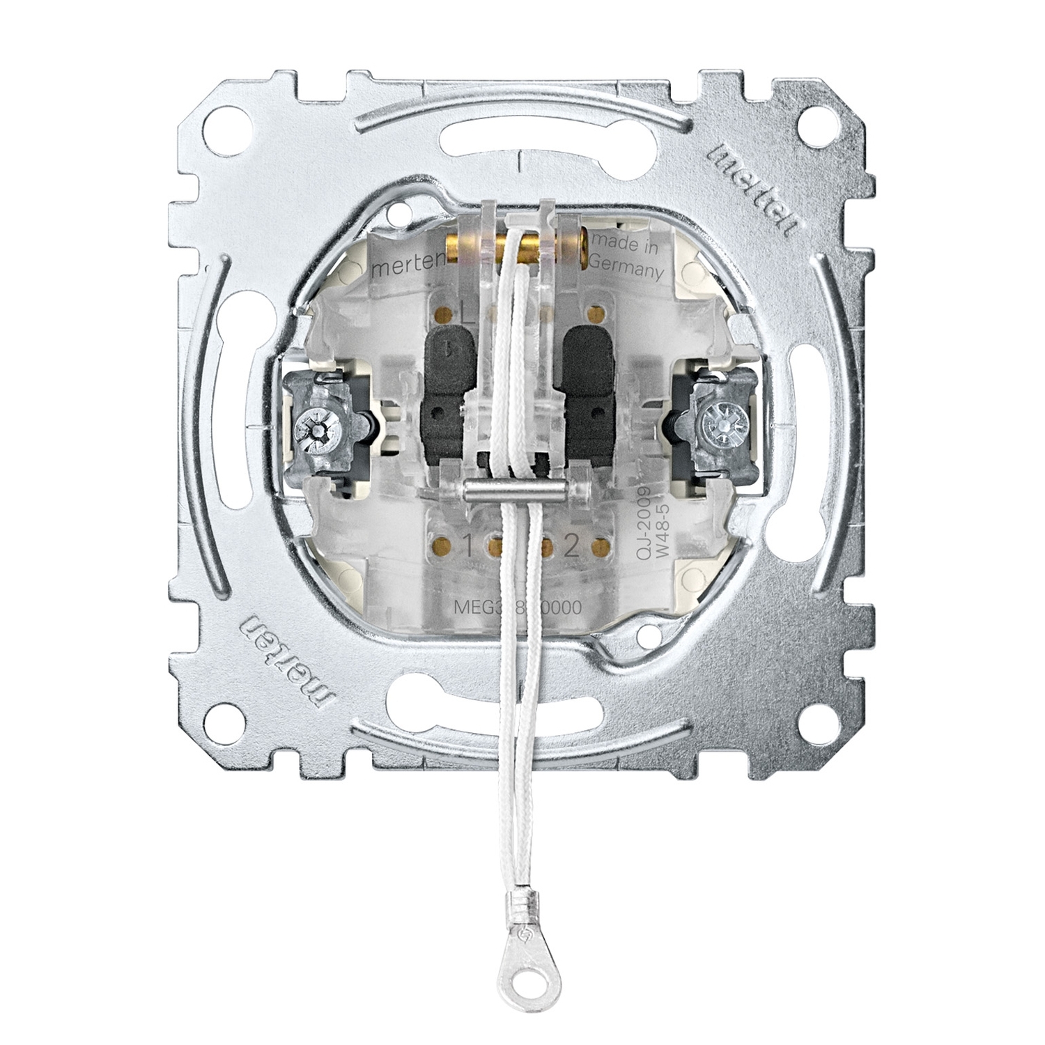 Eigenschaften-Frontseitiges Nachrüsten von QuickFlex-Beleuchtungsmodulen ohne Schalterdemontage. Frontseitige Mess- und Prüfkontakte, zugänglich ohne Schalterdemontage. Schnellgewindeschrauben für die Krallenbefestigung. Versenkte Krallen mit Rückstellfeder. Hochglanzverzinkter Tragring isoliert zur Kralle. Mit Krallen- und Schraubbefestigung. Mit Steckklemmen. Zu komplettieren mit Zentralplatte mit Kontrollfenster für Zugschalter System M MEG3380-03xx /-04xx Zubehör LED-Beleuchtungs-Modul für Schalter/Taster MEG3901-0000, MEG3901-0006, MEG3921-0000. Ausführung 10 AX, AC 250 V.
