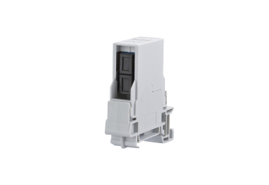 Anschlusseinheit mit SC-D Kupplung auf Tragschiene TH35 nach DIN EN 60715, Führungshülse aus Zirkonoxydkeramik (ZrO2) geschlitzt für Singlemode Anwendungen, Führungshülse aus Metall (Ph-Br) geschlitzt für Multimode Anwendungen, die Baubreite von 1TE ermöglicht den Einbau von bis zu 12 Geräten in einen Standard-Elektroverteiler, Steckrichtung senkrecht, 90° zur Tragschiene, Varianten: SM, MM
