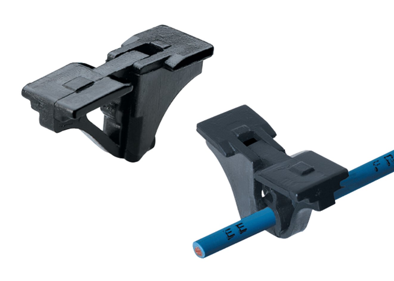 BS 9 / BS 10: Bezeichnungsträger für das Kennzeichenschild KSS 20x9 oder für den transparenten Kennzeichenträger KM 6/18 mit Kennzeichenschild KS 4/18. Die Befestigung erfolgt über einen selbstklemmenden (federbelasteten) Fuß.