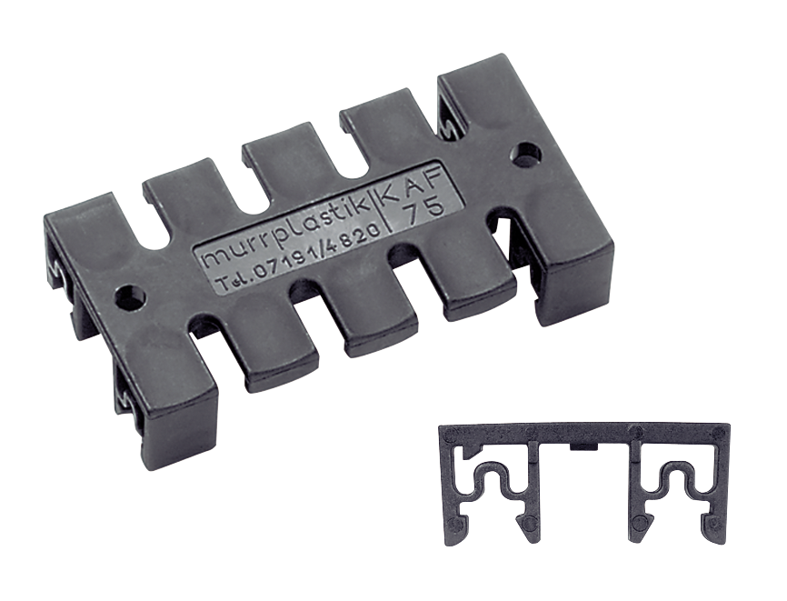 Kabelabfangleiste Typ KAF // KAF 75: Schwarz // Die Kabelabfangleiste KAF eignet sich zur Halterung und gleichzeitigen Zugentlastung der Kabel im Schaltschrank. Die Montage kann auf eine 35-mm-Normhutschiene (EN 50022; Niedax 2934;2936) oder auf eine C-Schiene (Niedax 2970;2971) erfolgen.Die Montage erfolgt durch einfaches Aufschnappen.Zugelassen in der Bahntechnik (EN 45545-2 / NFPA 130)