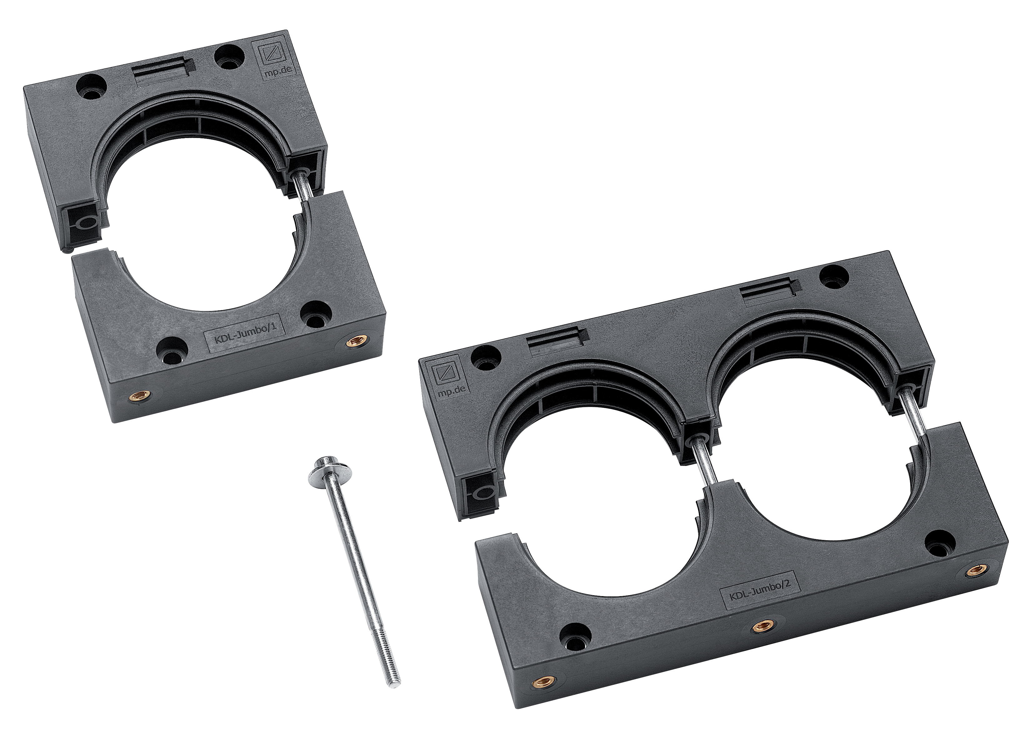 Kabeldurchführungsleiste Typ KDL-Jumbo // KDL-Jumbo 2: Schwarz // Die starke Kabeldurchführungsleiste zur Durchführung vorkonfektionierter Leitungen, von Metallrohren und Wellschläuchen (EW & EWX-Wellung).2-teiliger RahmenSehr stabiles und komplett teilbares SystemFür große DurchführungenIntegrierte, unverlierbare DichtungSchutzklasse: IP 65 (mit passenden Tüllen und Leitungen)Temperaturbeständigkeit: -30 °C +100 °CBrandklasse: V0Material: Polyamid 6.6, PURRoHS-konformUV-BeständigMade in Germany Integrierte Zugentlastung an allen Tüllen