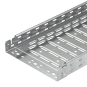 Kabelrinne mit Schnellverbindungssystem, inklusive aller relevanten Verbindungsbauteile zur zeitsparenden und wirtschaftlichen Installation, mit gesickter Längsbodenlochung 7x20 mm zur Auslegemontage und ab der Breite 200 mm mit Quersickung 7x32 mm zur Kabelbelüftung und zur Montageerleichterung.